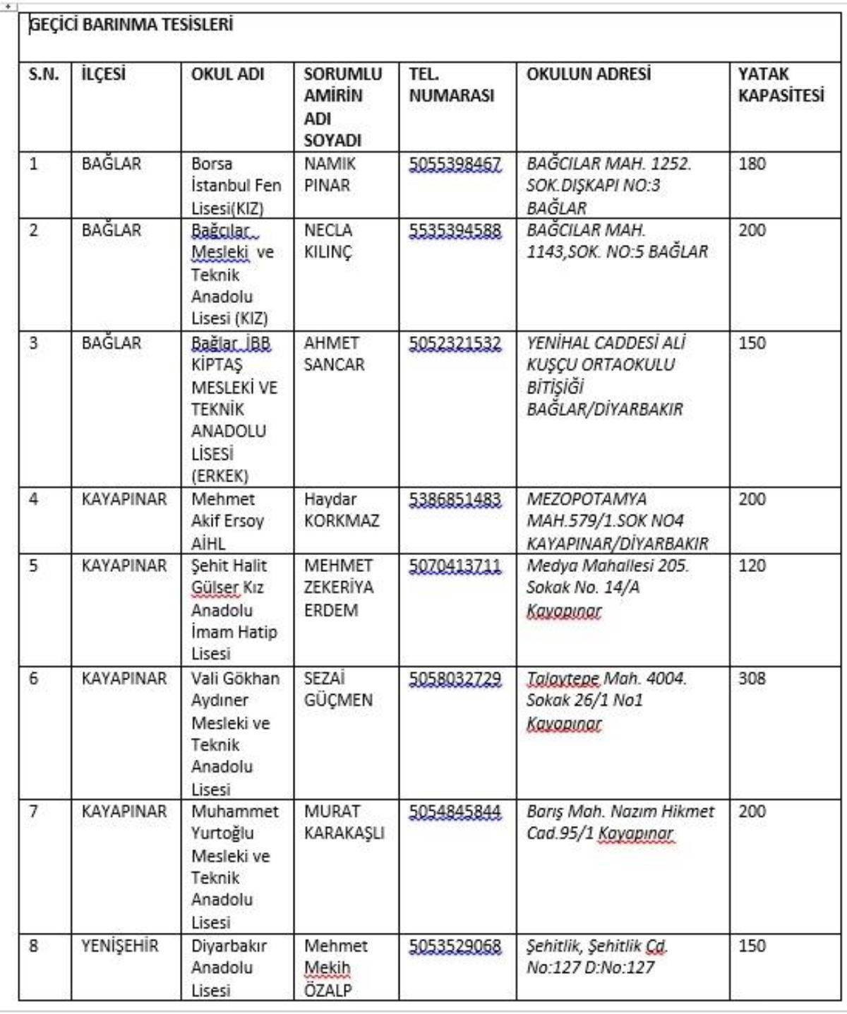 Türkiye'yi yasa boğan 7.7 büyüklüğündeki depremin ardından Diyarbakır Valiliği'nden açıklama geldi. Valilikten yapılan açıklamada, yurttaşların yararlanabilmesi için barınma alanlarının listesi paylaşıldı.