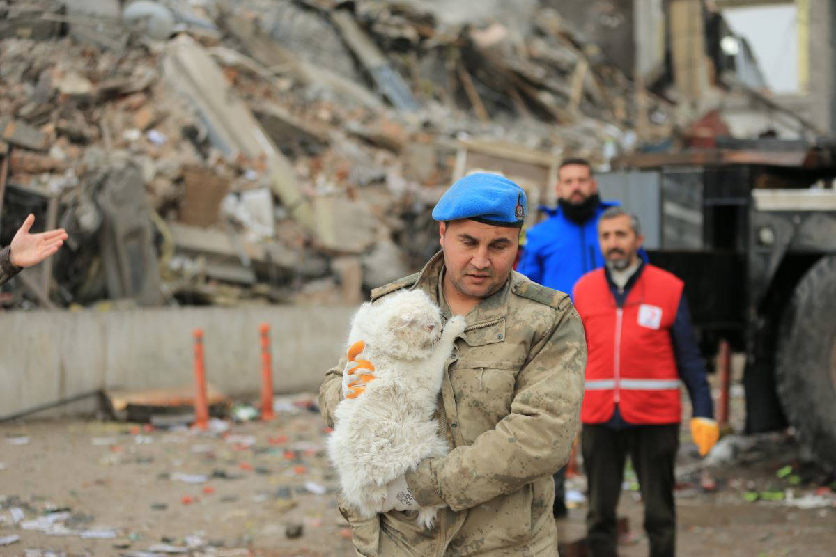 Merkez üssü Kahramanmaraş'ın Pazarcık ilçesi olan 7,4 büyüklüğündeki depremden etkilenen Diyarbakır'da çöken Galeria İş Merkezinin enkazından jandarma ekiplerince bir kedi kurtarıldı.