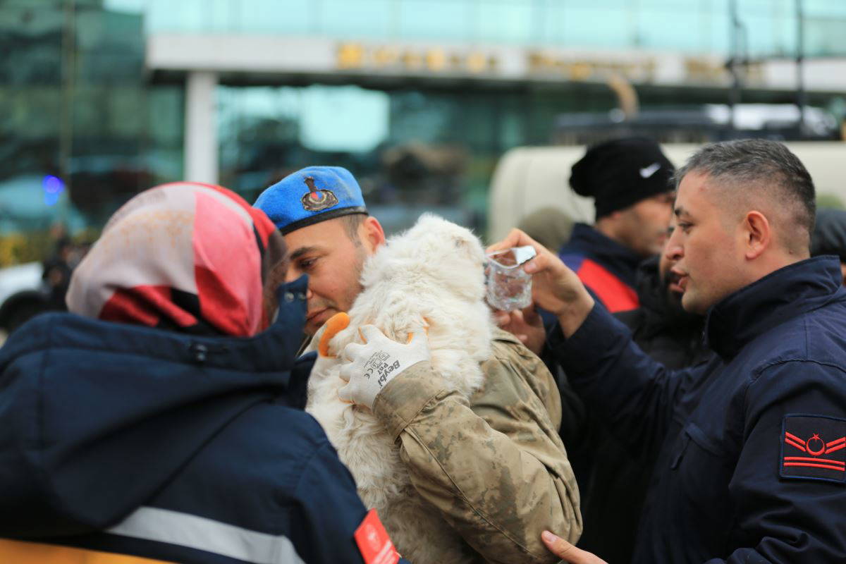 Jandarma ekipleri kediye ulaşarak saat 08.59 sıralarında enkazdan çıkarılmasını sağladı.