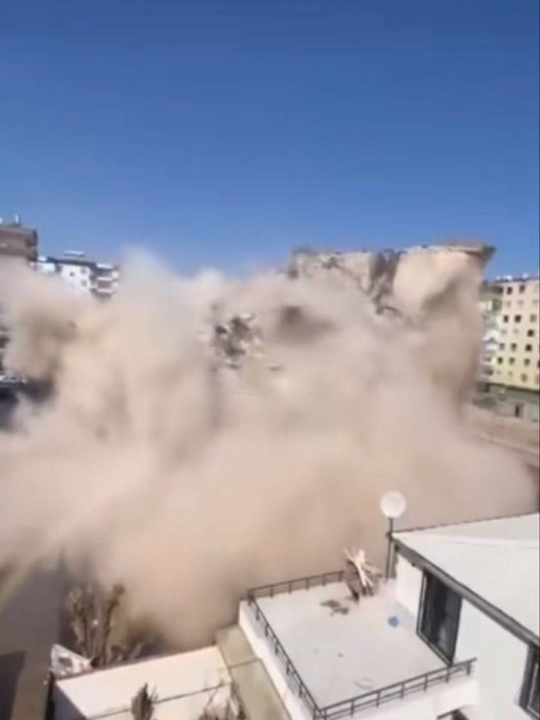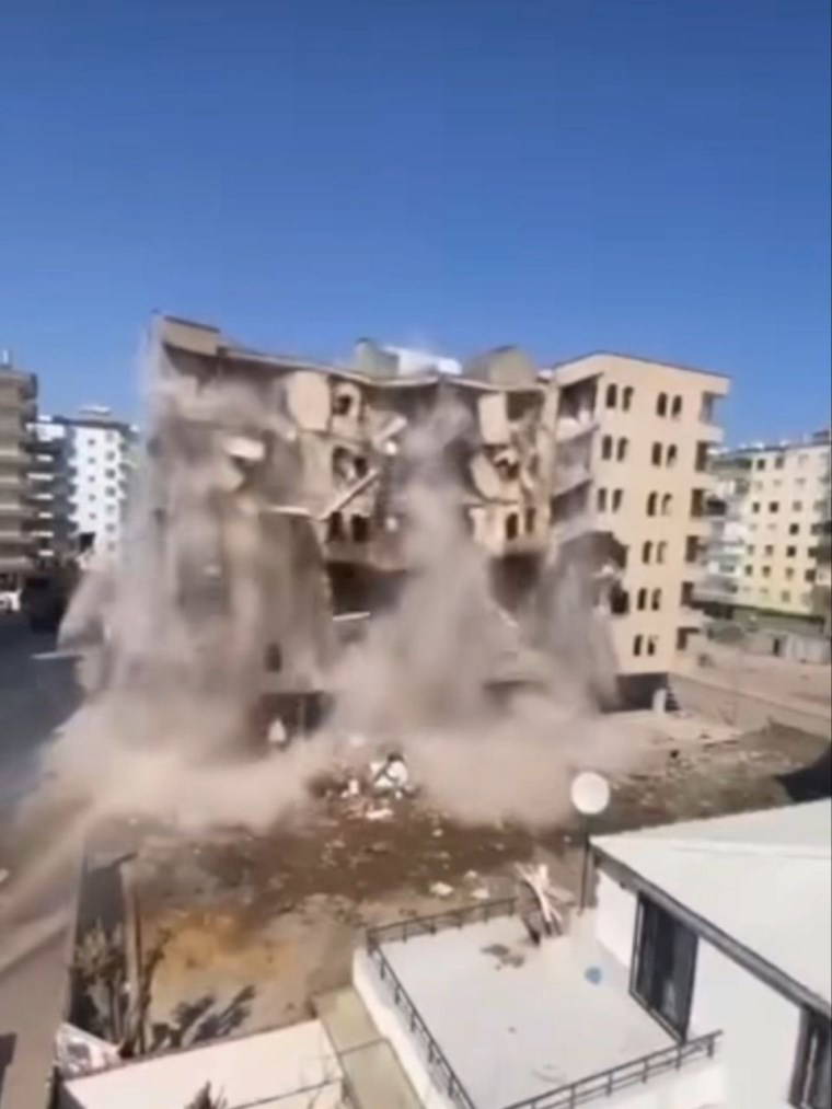 Kahramanmaraş merkezli 6 Şubat'taki depremlerde ağır hasar alıp tahliye edilen Kayapınar ilçesi Huzurevleri Mahallesi’ndeki 6 katlı bina, kontrollü yıkım sırasında çöktü.