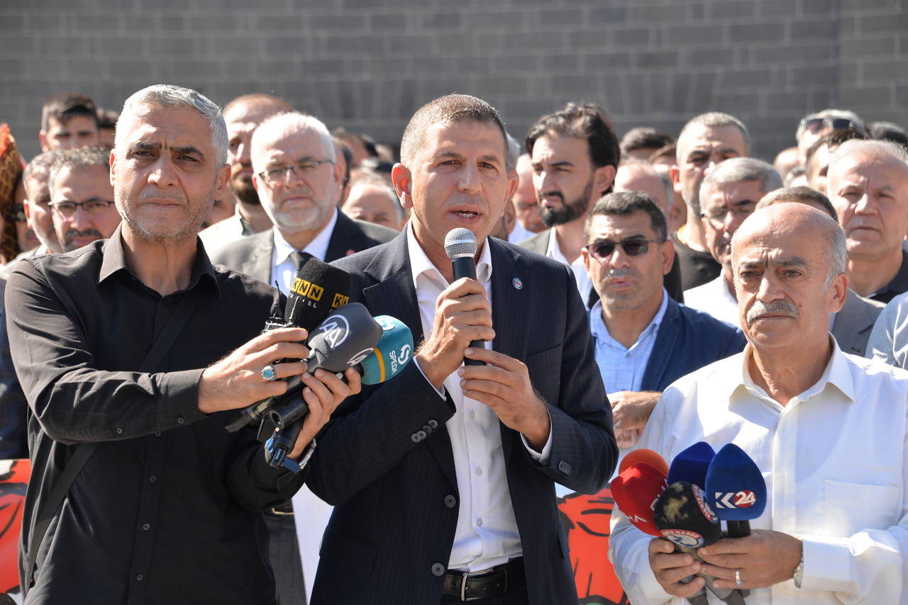 Grup adına açıklama yapan Memur-Sen Diyarbakır İl Başkanı Ramazan Tekdemir, "İsrail çetesi, 75 yıldır Gazze'yi sistematik bir şekilde soykırıma maruz bırakmaktadır. Son 17 yıldır Gazze'ye her gün ölüm kusmaktadır. Gazzeliler temel ihtiyaçlardan mahrum bırakılmaktadır. İşgal çetesi genç, çocuk, yaşlı ve kadın demeden bir halkı imha etmeyi hedeflemektedir. Bugün kıyam etme, ayağa kalkma ve iman tazeleme zamanıdır. Tarih bugün acizleri de yazmaktadır. Direnişlerin başlattığı Aksa Tufanı operasyonu meşrudur, haklıdır ve insanidir. Bir hayat bulma, nefes alma çabasıdır. Bundan dolayı Aksa Tufanı kıyamını ve mücahitlerini selamlıyoruz" dedi.