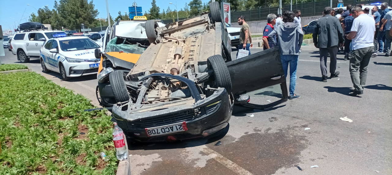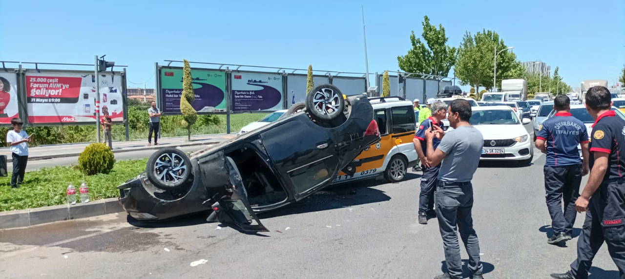 Kaza, Yenişehir ilçesi Elazığ Caddesi'ndeki kavşakta meydana geldi. Erdinç T.'nin kullandığı otomobil, takla atıp, karşı yönde kırmızı ışıktaki taksiye çarparak ters döndü. İhbar üzerine kaza yerine itfaiye, sağlık ve polis ekipleri sevk edildi.