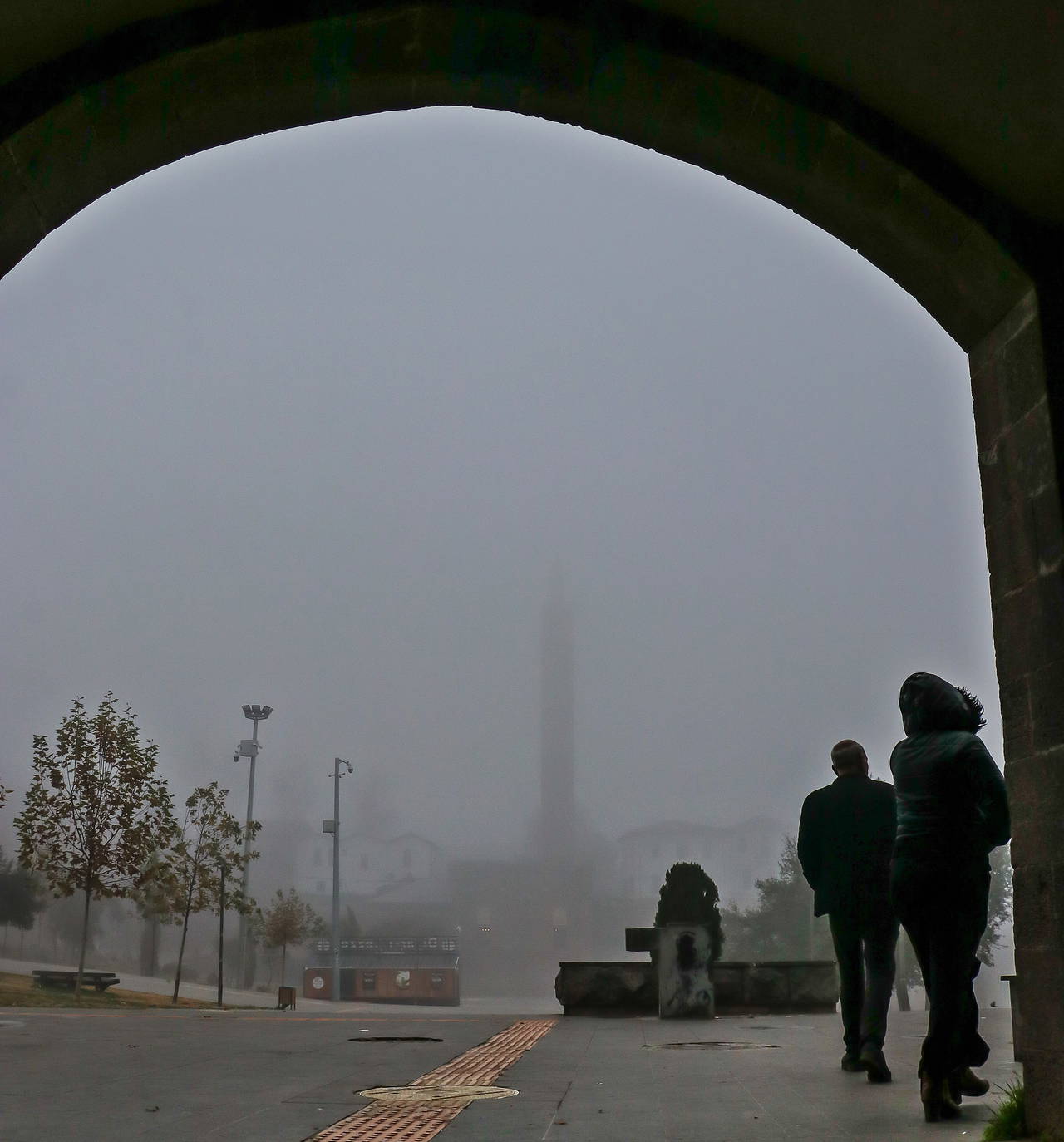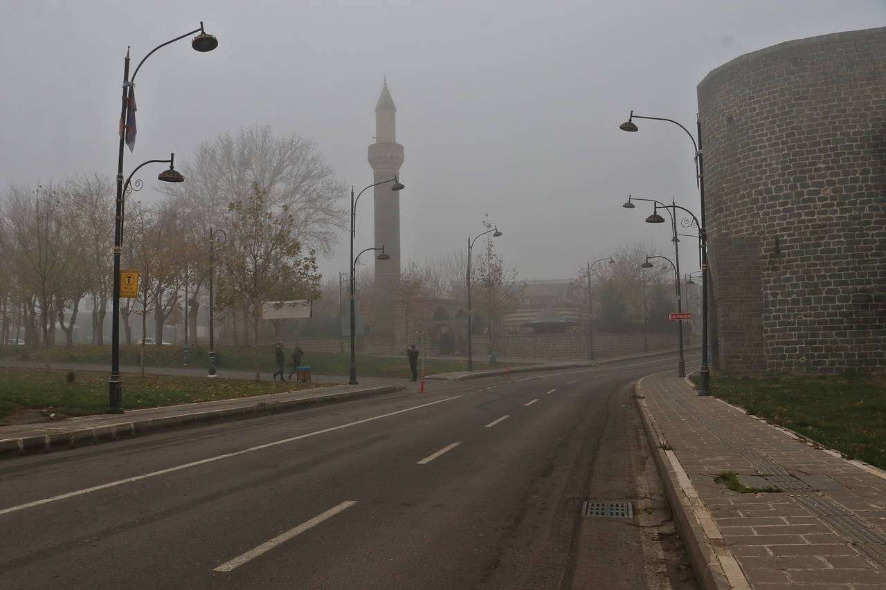 Diyarbakır Surları, tarihi yapılar ile Hevsel Bahçeleri ve surların eteğindeki Millet Bahçesi de sis nedeniyle gözden kayboldu.
