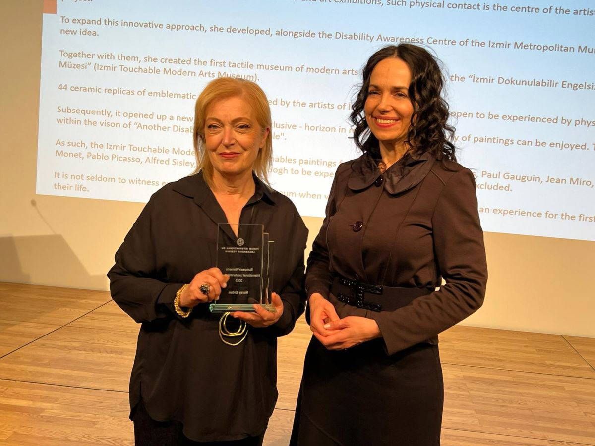 İzmir’de yaşayan seramik sanatçısı Nuray Erden, üç yıl önce görme engelli bireylerin sanat eserlerine erişimini sağlamak amacıyla yaptığı çalışmalar kapsamında Karşıyaka ilçesinde Dokunulabilir Engelsiz Modern Sanat Müzesi’ni hizmete açtı. Yerel yönetim ve engelliler yararına faaliyet yürüten sivil toplum kuruluşlarının katkılarıyla açılan müzenin ünü kısa sürede İzmir sınırlarını aşarak, önce Türkiye geneline ardından da Avrupa ve dünyaya yayıldı. Ülkede tek ve Avrupa’da sınırlı sayıda örneği bulunan ve bugüne dek on binlerce engelli bireyi ağırlayan, yurt dışından Türkiye’ye gelen engellilerin ziyaret ettiği ve takdirle karşılanan müze projesi AP tarafından ödüle layık görüldü. Erden, AP’ye bağlı kuruluş European International Leadership Women Awards Forum tarafından yapılan değerlendirmede 2023 yılında başarılı 9 kadından biri seçilerek, 8 Mart Dünya Emekçi Kadınlar Günü’nde Brüksel’den Türkiye’ye ödülle döndü.