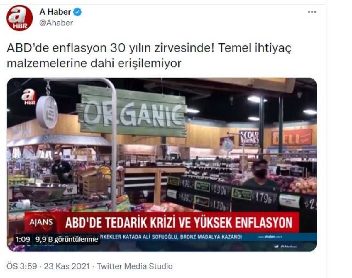 Türkiye'deki enflasyon ve hayat pahalılığına ilişkin herhangi bir haberi olmayan A Haber, bu haberi ile tepki çekti.
