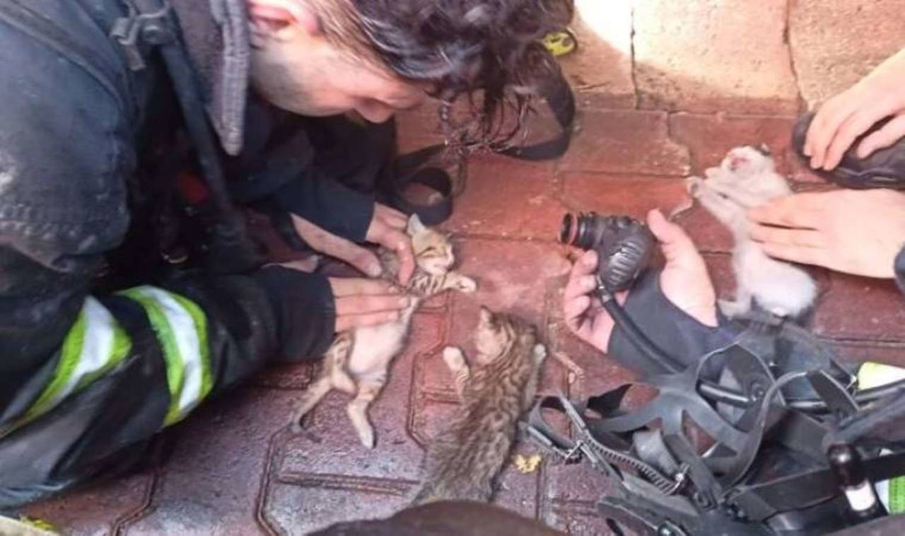 İtfaiyeciler, müdahale sırasında çatı katında hareketsiz yattığını gördükleri 4 yavru kediyi binadan çıkardı.