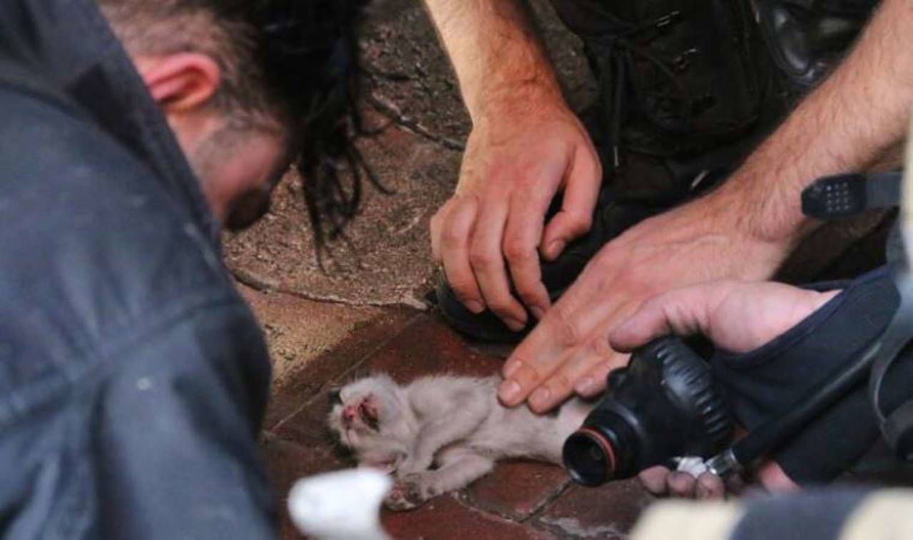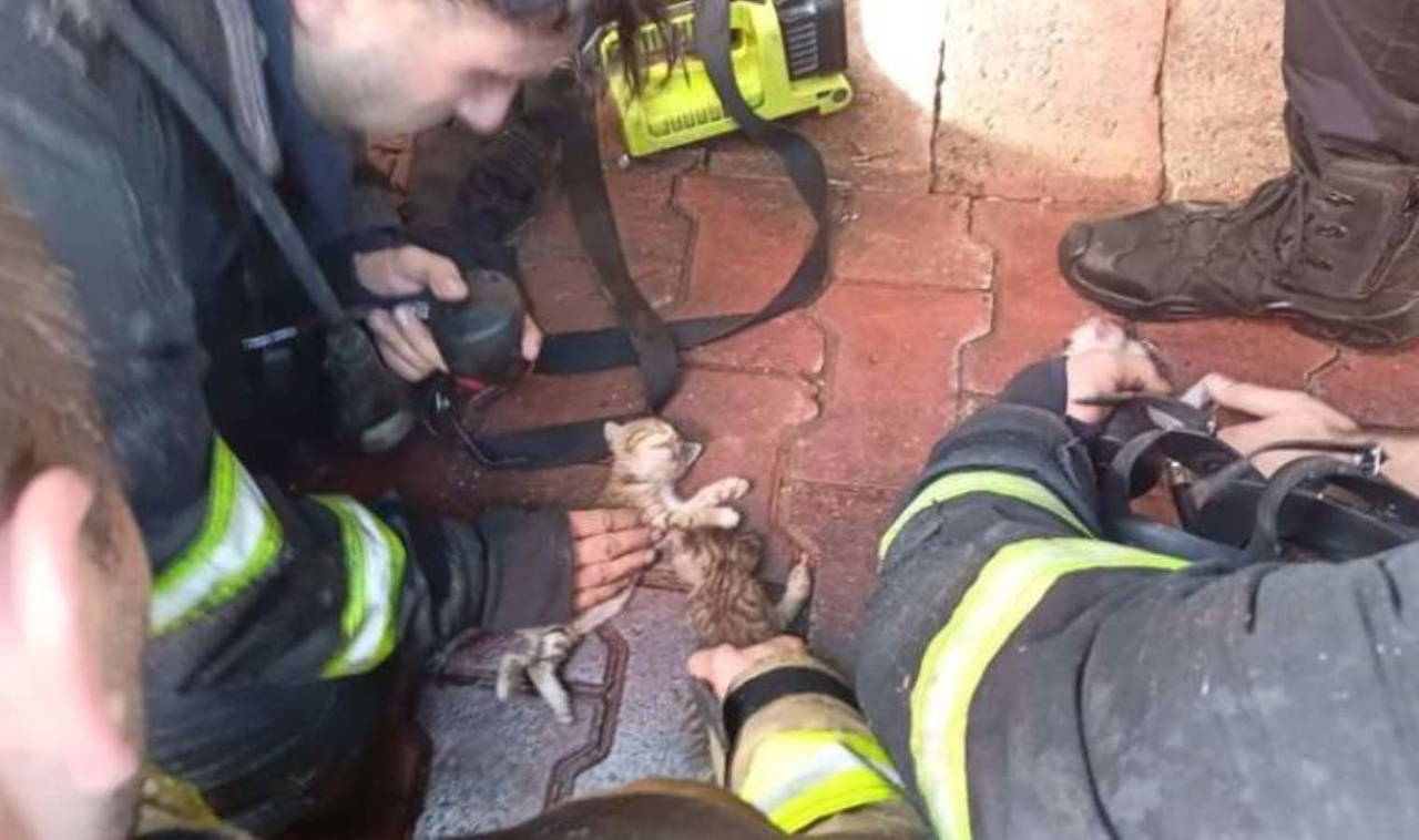 İtfaiye erlerinin kalp masajı ve suni teneffüs yaptıkları yavru kediler, dakikalar süren çabaya rağmen kurtarılamadı.