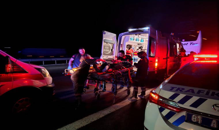 Alınan bilgilere göre Sakarya’dan Bolu istikametine seyir halinde olan M.Ç. idaresindeki 57 AAG 077 plakalı Mercedes marka otobüs, aynı istikamette seyir halinde olan Ç.K. idaresinde ki 81 AED 319 plakalı DAF Marka boş TIR'a arkadan çarptı.