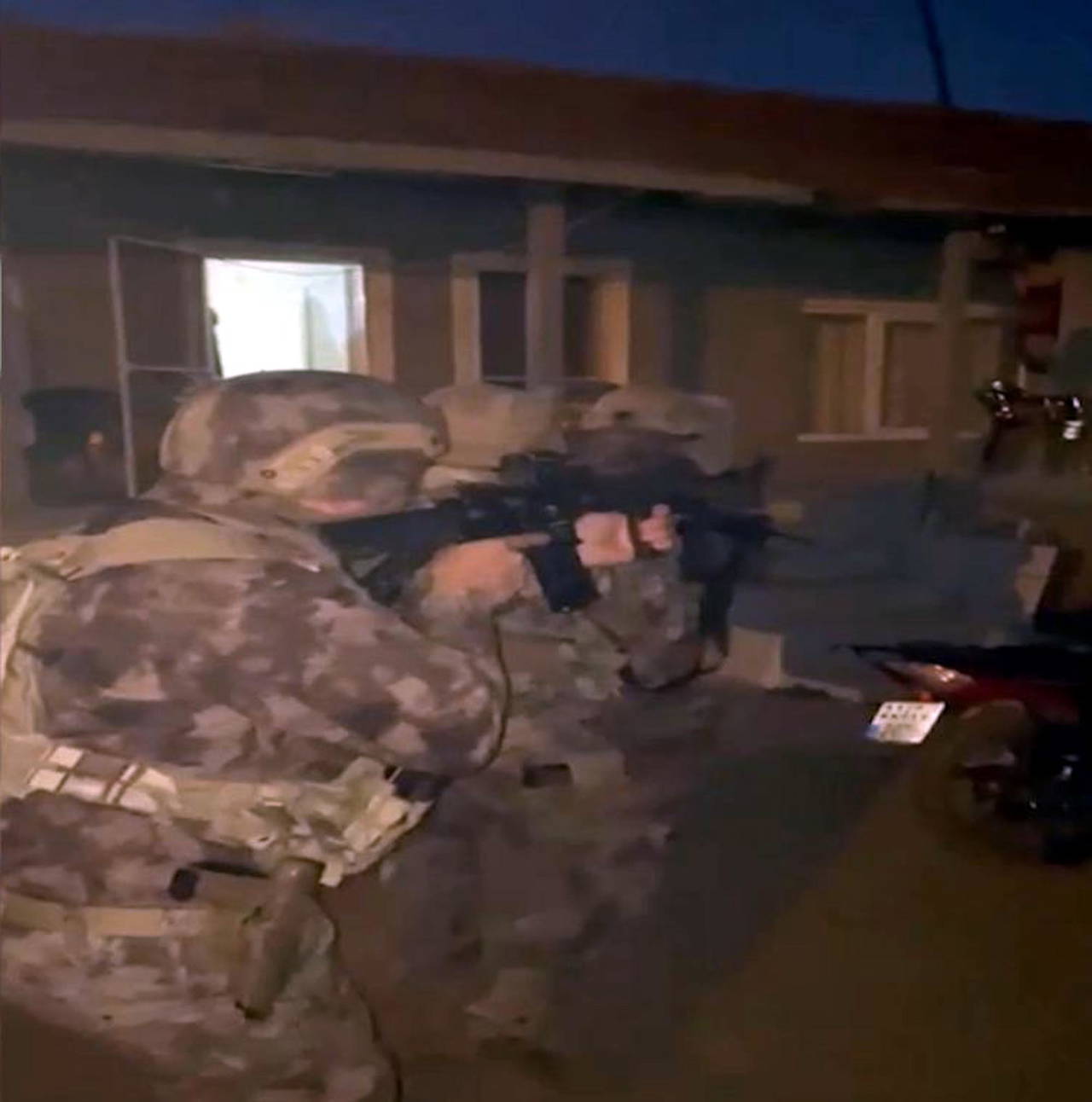 11 şüpheli gözaltına alınırken, adreslerde yapılan aramada ruhsatsız 2 tabanca, 3 şarjör, 41 mermi, 42 bin 45 TL, 1625 dolar, 6 bin 575 Avro, farklı kişilere ait 2 Filistin pasaportu ele geçirildi.