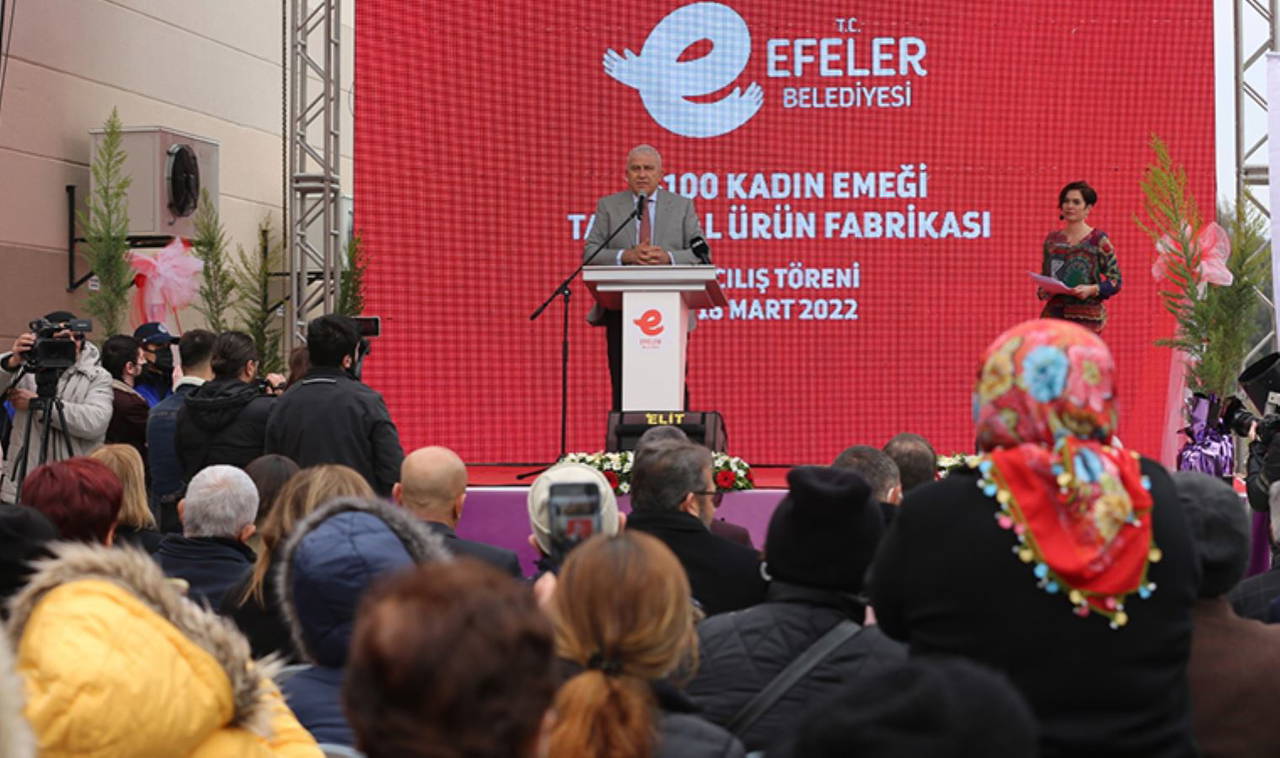 Açılışta kadınlara seslenen Başkan Atay, “Sizler idolümüzsünüz bizim. Çünkü bir kadın olarak nelerin başarılabileceğini bu topluma gösteriyorsunuz. Ben seçimden önce verdiğim sözleri bir bir yerine getirmek için çaba sarf ediyorum. Ben ayrımcılık yapan bir belediye başkanıyım. İki kesime ayrımcılık yapıyorum: Birincisi gençler ve çocuklar, ikincisi ise kadınlar. Bir erkek olarak kadınlara ayrımcılık yapmaya devam edeceğim. Siz hak ettiğiniz değeri alana kadar belediye başkanı olarak sonuna kadar yanınızdayım. Güçlü kadın istiyoruz, eşitlik istiyoruz. Güçlü bir kadın olabilmek için üretken olmak, bağımsız olmak gerekiyor. Özgürlüğünüzün olması gerekiyor, geçiminizi sağlamanız gerekiyor. İşte burada, 200 civarı işçi kardeşimiz çalışacak. Kadınlar üretecek, bu fabrikada işleyeceğiz ve para da kazanacağız” dedi.