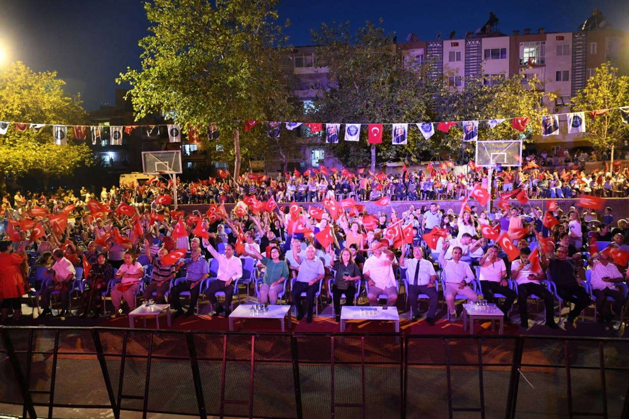 Karabağlar’da ise resmi tören sonrası Kazım Karabekir Mahallesi’ndeki Vali Nevzat Ayaz Parkı’nda Türk Halk Müziği sanatçısı Sümer Ezgü yurttaşlarla buluştu. Konser öncesi Karabağlar Belediyesi tarafından tüm izleyicilere Türk bayrakları dağıtıldı. Vatandaşlar ellerindeki bayraklarla alanı gelincik tarlasına çevirdiler ve Ezgü’nün seslendirdiği parçalara coşkuyla eşlik ettiler.