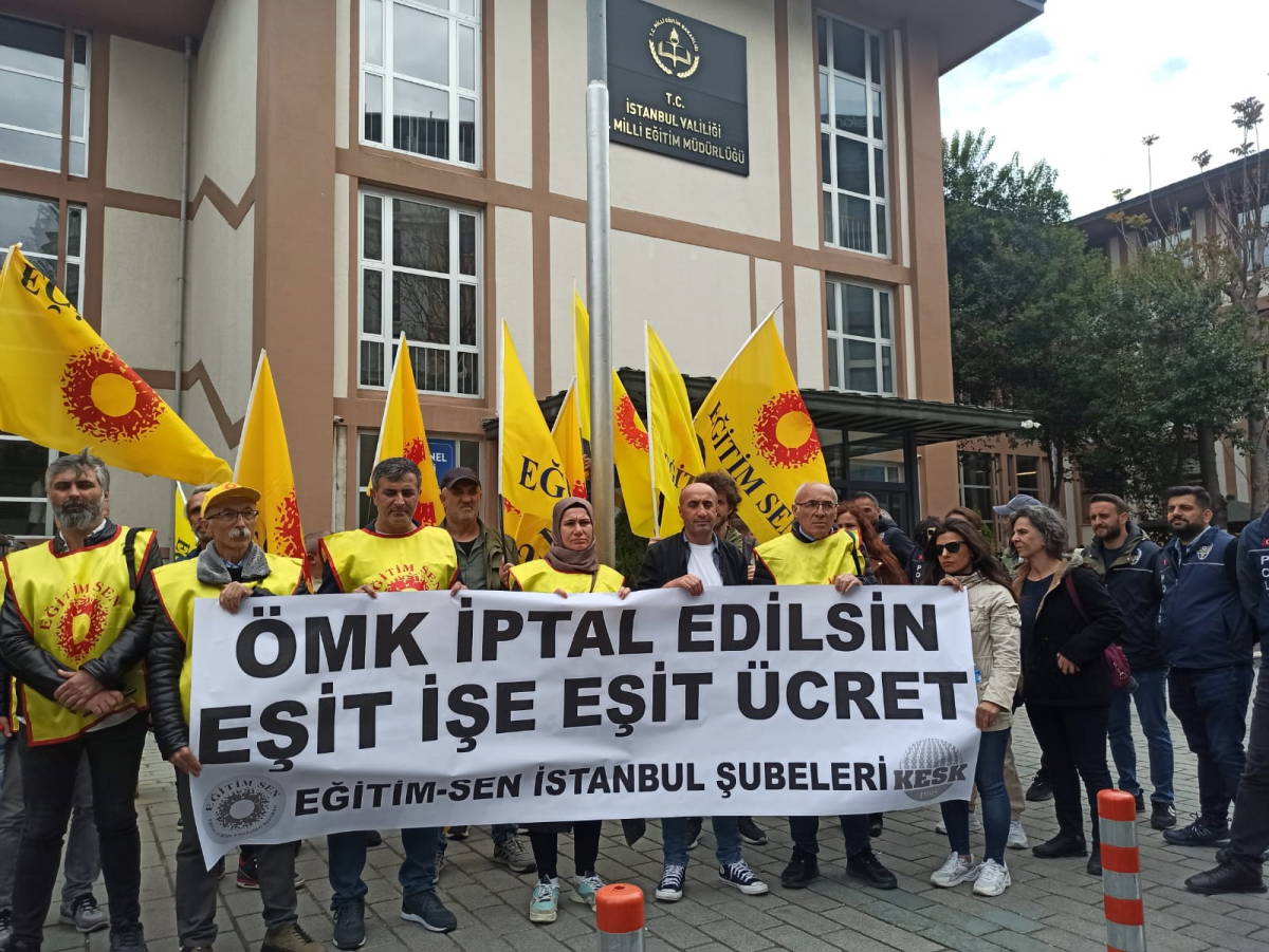 Eğitim-Sen İstanbul Şubesi, Öğretmenlik Meslek Kanunu'nun (ÖMK) kaldırılması talebiyle bugün İl Milli Eğitim Müdürlüğü önünde bir basın açıklaması gerçekleştirdi.