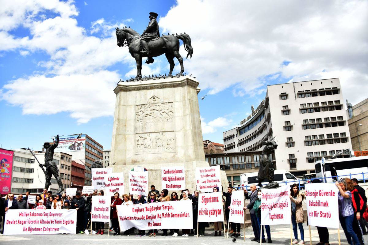 Ankara’da ise ücretli öğretmenler ve halk eğitim merkezlerinde çalışan usta öğreticiler enflasyon altında ezilen “düşük maaşları” protesto etti.
