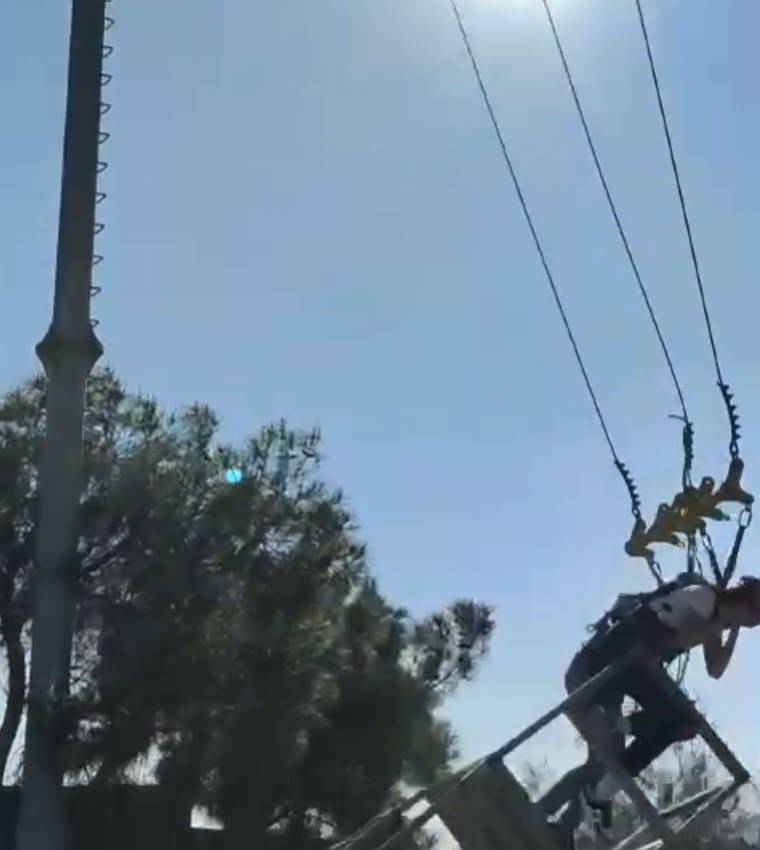 Mersin'de bir eğlence merkezine giden 2 genç, yüksek noktadan bırakılan salıncağa bindi. Salıncağın bırakılmasıyla 2 genç, aşağıda unutulan demir bindirme platformuna çarptı.