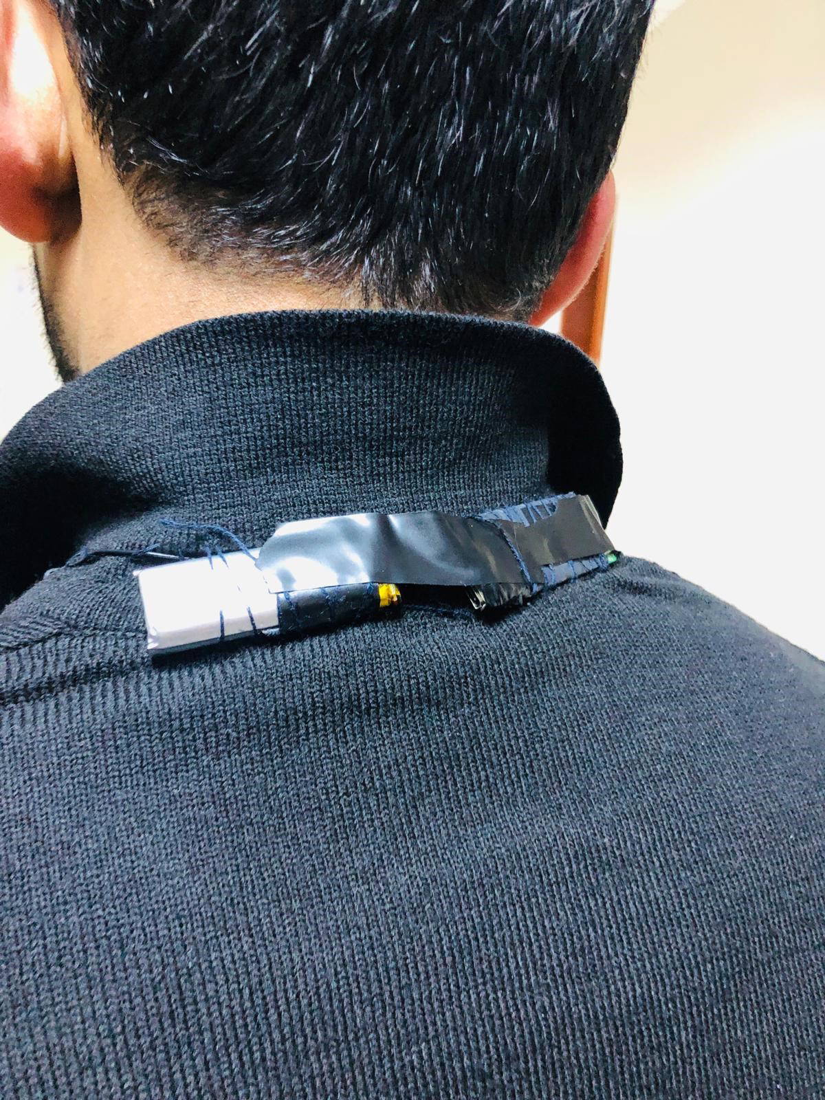 Görevliler, M.E.A.'nın kazağının yaka düğmesine ve ense kısmına gizlediği, kamera ile ses cihazından oluşan kopya düzeneğini buldu.