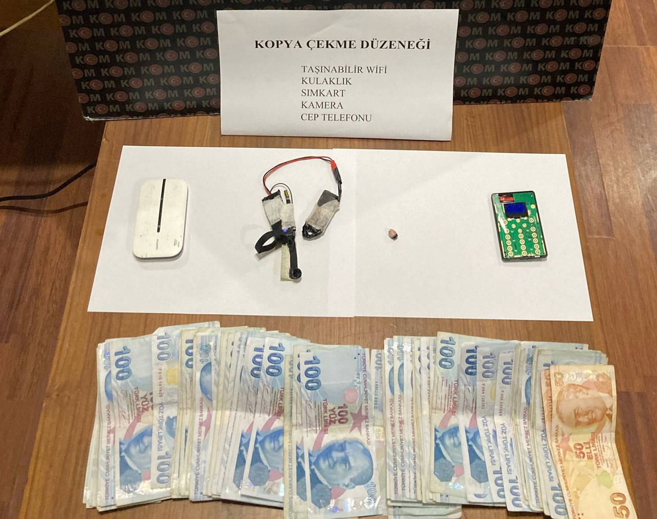 Wifi destekli ses ve görüntü kaydeden düzenek ve 8 bin lira paraya el konulurken, şahısların adliyeye sevk edileceği öğrenildi.