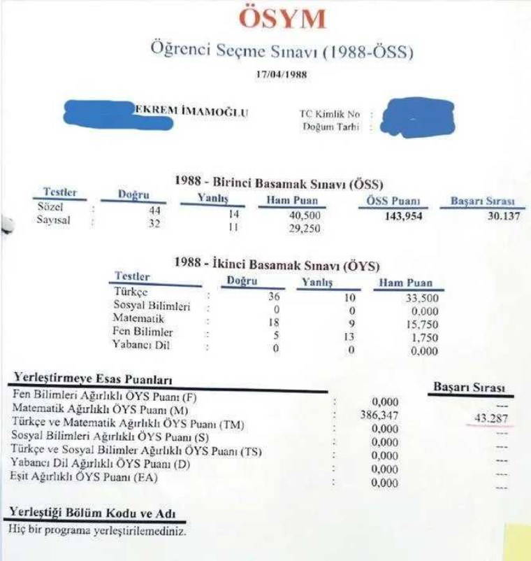 Öte yandan o yıllarda ÖSYM sonuç belgesi formatının da farklı olduğu biliniyor.