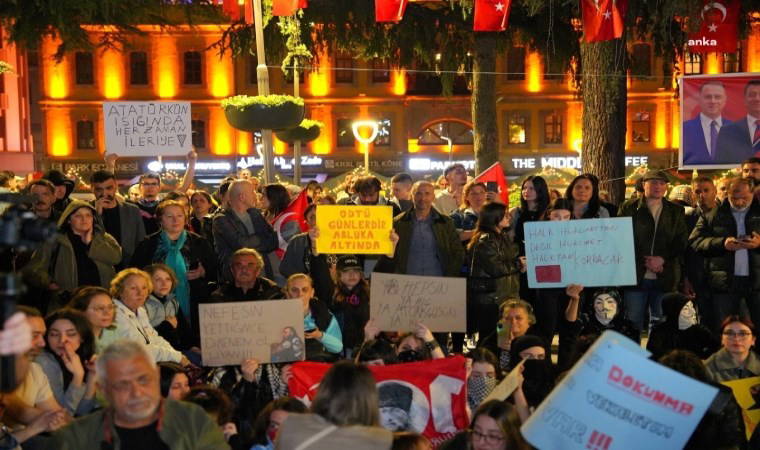 Atatürk posterleri ve Türk bayraklarının yanı sıra, "Bir cafe zincirini bile korudunuz ama bizi koruyamadınız", "Çapulcuların kardeşleri büyüdü", "ODTÜ günlerdir abluka altında" yazılı pankartlar taşıyanlar, "Hak, hukuk, adalet" sloganları atarak, Ekrem İmamoğlu ve arkadaşlarının serbest bırakılmasını istedi.