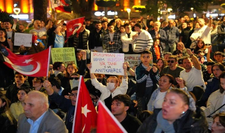 Ekrem İmamoğlu'nun tutuklanmasını protesto etmek için Meydan Parkı Atatürk Anıtı önünde toplanan her yaştan yurttaş, tepkilerini dile getiren pankartlar eşliğinde oturma eylemi yaptı.
