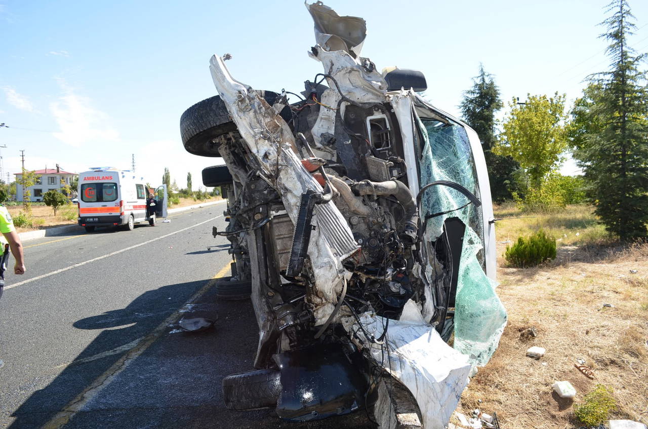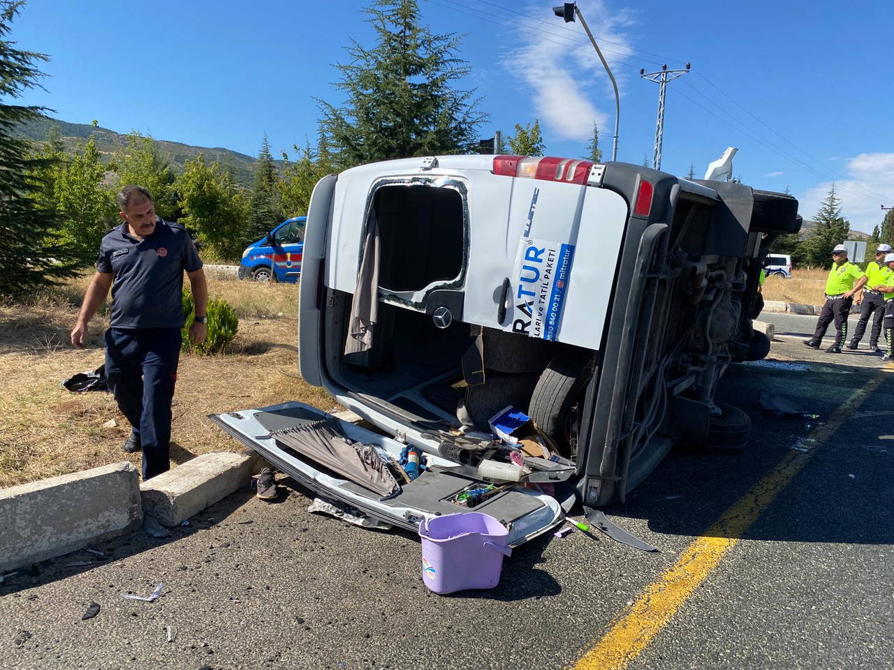 Çarpmanın etkisiyle minibüs devrilirken çok sayıda ekip bölgeye gönderildi.