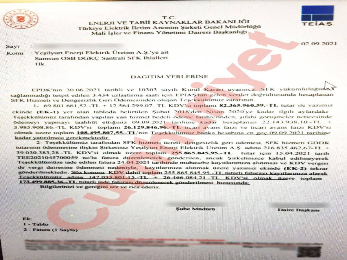 Yeni hesaplama yöntemi ile TEİAŞ’a aktarılması gereken faiziyle birlikte 320 milyon TL’lik zararın 210 milyon TL’si firmada kaldı. Üretilmeyen elektriğin üretilmiş gibi gösterilerek 210 milyon TL’lik kamu zararı çoktan yurttaşın elektrik faturasına yansıtılmıştı.