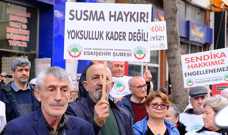 “En düşük emekli maaşı 2008 yılı öncesi asgari ücretin yüzde 110 üzerinde olması yasal güvencesi vardı. SGK'da reform adıyla AKP iktidarı tarafından yapılan düzenlemeyle bu yasal güvence kaldırıldı. Aylık bağlama oranları her yıl sürekli düşürüldü ve bugüne geldik. SGK, yargı ve Maliye Bakanlığı’nda örgütlü olan kısa adı BES olan Büro Emekçileri Sendikası BES-AR'ın son ocak ayı verilerine göre açlık sınırı 21 bin 953 lira. Yoksulluk sınırı 56 bin 942 lira. Bekar bir çalışanın aylık yaşama maliyeti 26 bin 712 lira. Bilim insanlarından oluşan enflasyonu araştırma grubu ENAG'ın son tespit ettiği yıllık enflasyon oranı yüzde 129.11’dir. Aylık asgari ücret 17 bin 2 lira. Tüm bilimsel veriler apaçık orta yerde dururken, AKP'nin saray iktidarı emekli aylığını 10 bin lira yapmakla övünerek, bizlere sefalet içinde bir yaşamı kader olarak dayatıyor. Bunu kabul etmiyoruz. Sefalete teslim olmayacağız.”