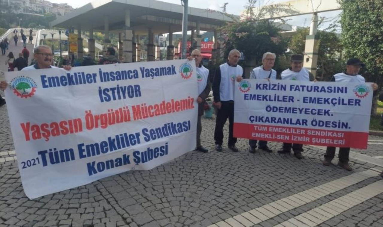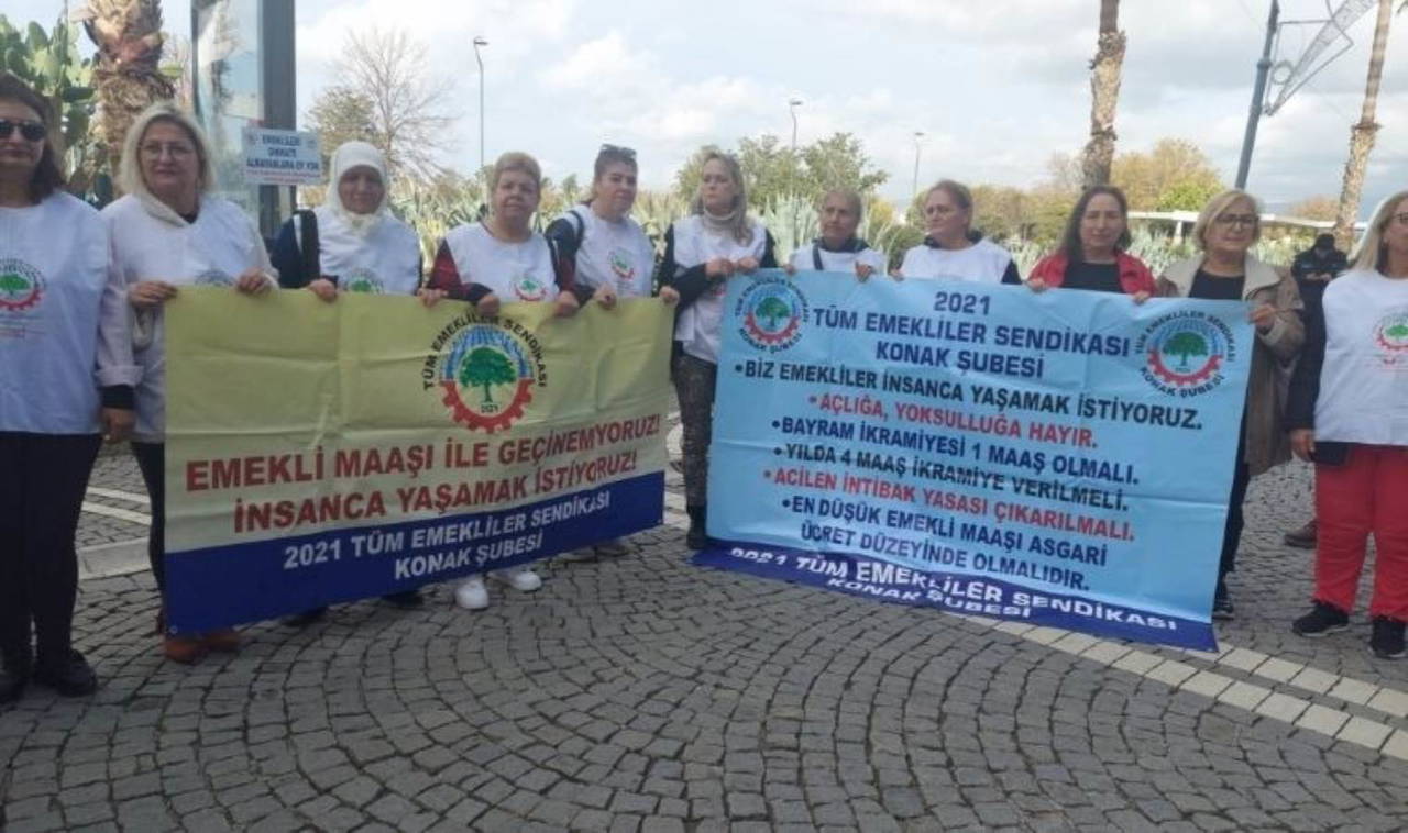 Tüm Emekliler Sendikası Konak Şubesi üyesi emekliler bugün Konak Meydanında bir araya gelerek aldıkları emekli maaşlarını düzenlediklleri basın açıklamasıyla protesto etti. Sendika üye gün boyunca 2024 yılında emekli maaşlarının asgari ücret seviyesinde olması ve yıl içerisinde emeklilere 4 maaş ikramiye verilmesi için imza kampanyası düzenledi.