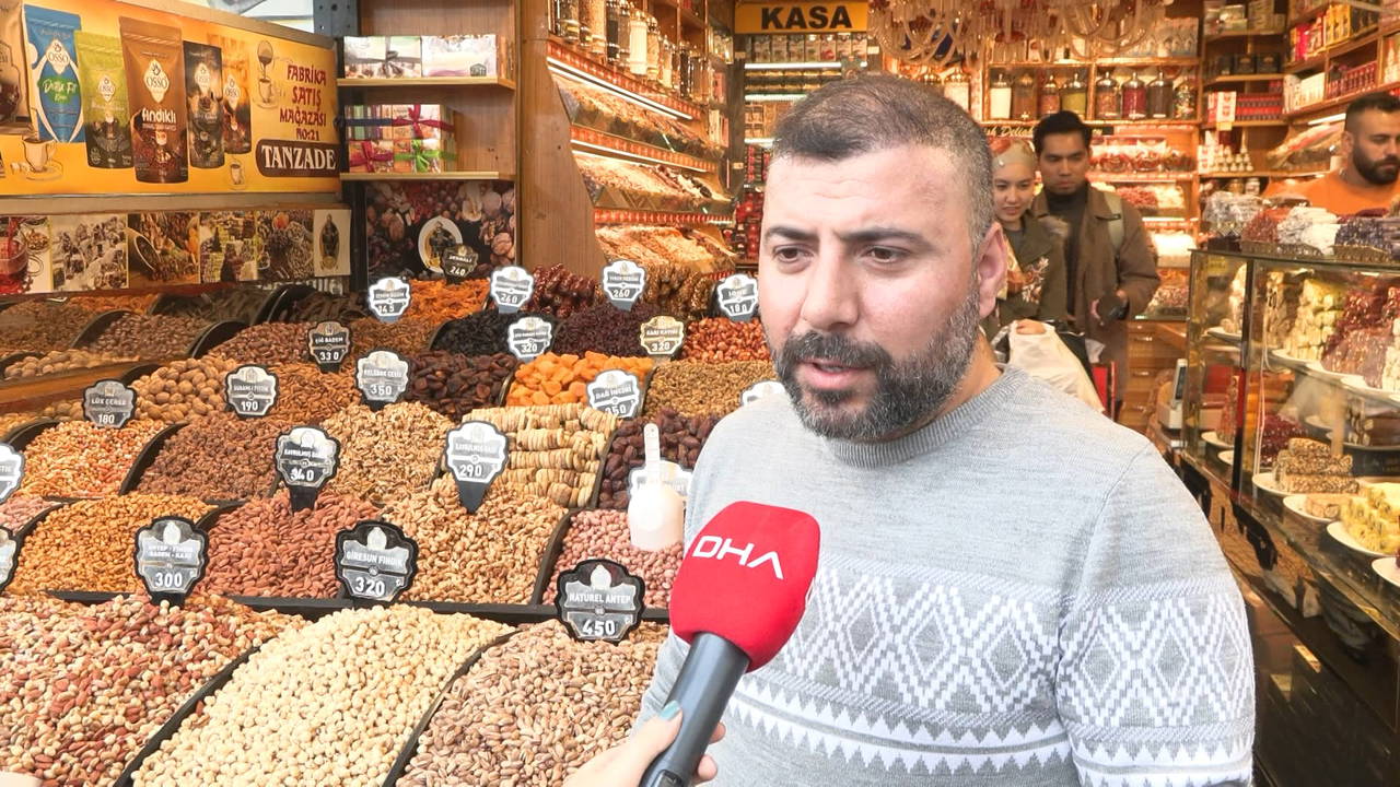 Esnaf Muhittin Tan "Şu günlerde biraz yoğunluk var çerezde var o da yani. Bir sene boyunca bekledik başladı bir yoğunluk. Çerez satıyoruz. Karışık çerez tercih ediliyor, fındık tercih ediliyor, antep fıstığı tercih ediliyor, soslu mısır, tuzlu fıstık, hurması, inciri, kayısısı hepsi tercih ediliyor. Fiyatlar her zamanki gibi aynı. 300 liraya çerez, 500 liraya antep fıstığı, 430 liraya var fıstık bu şekilde" dedi.
