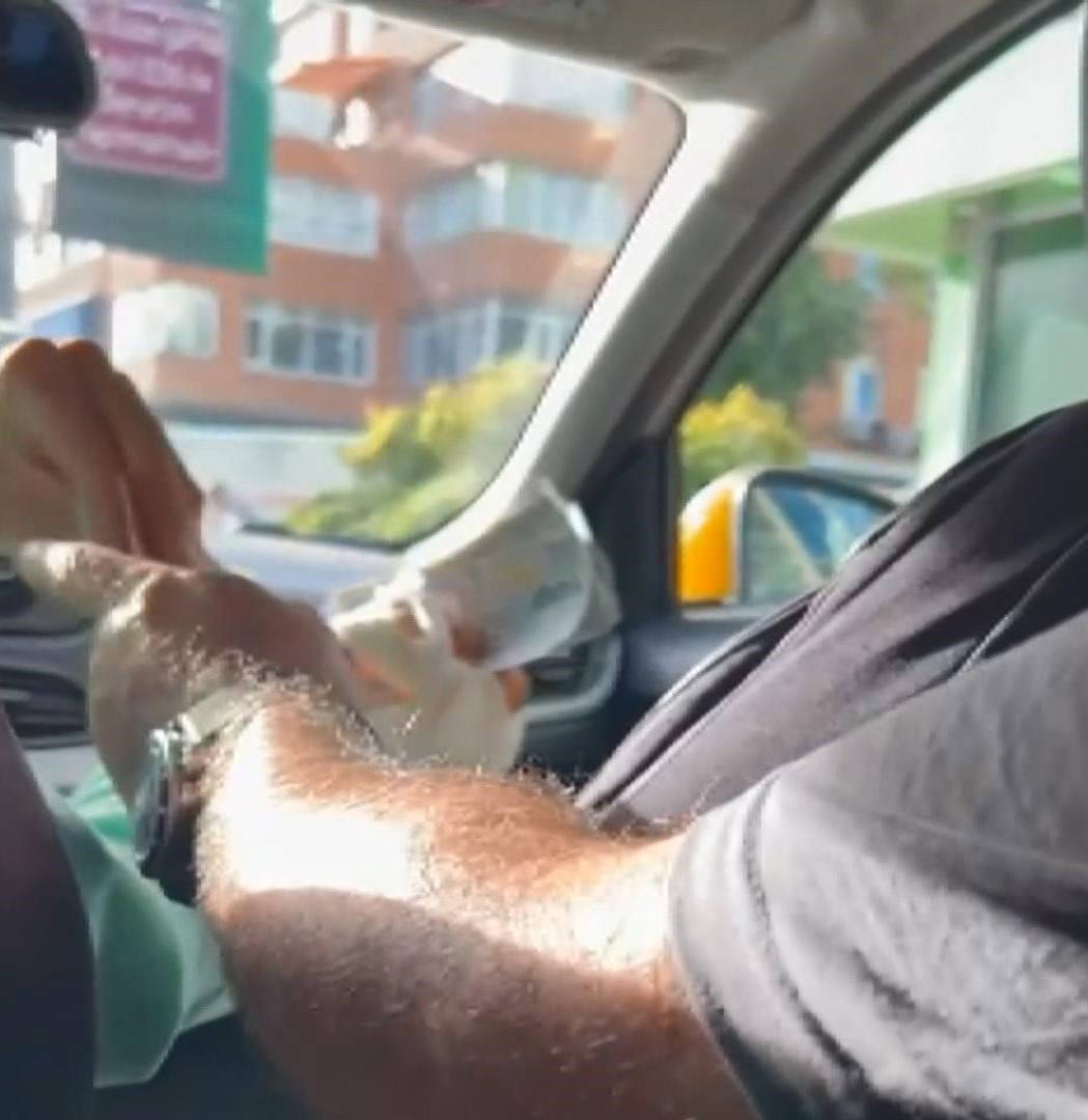 Taksinin içerisinde yaşanan ücret gerginliği cep telefonu görüntülerine de yansıdı. Görüntülerde sağ kolunun alçıda olduğu görülen taksicinin İngilizce konuşarak turistlerden para istediği, turistlerin ise taksiciye tepki gösterdiği görülüyor.