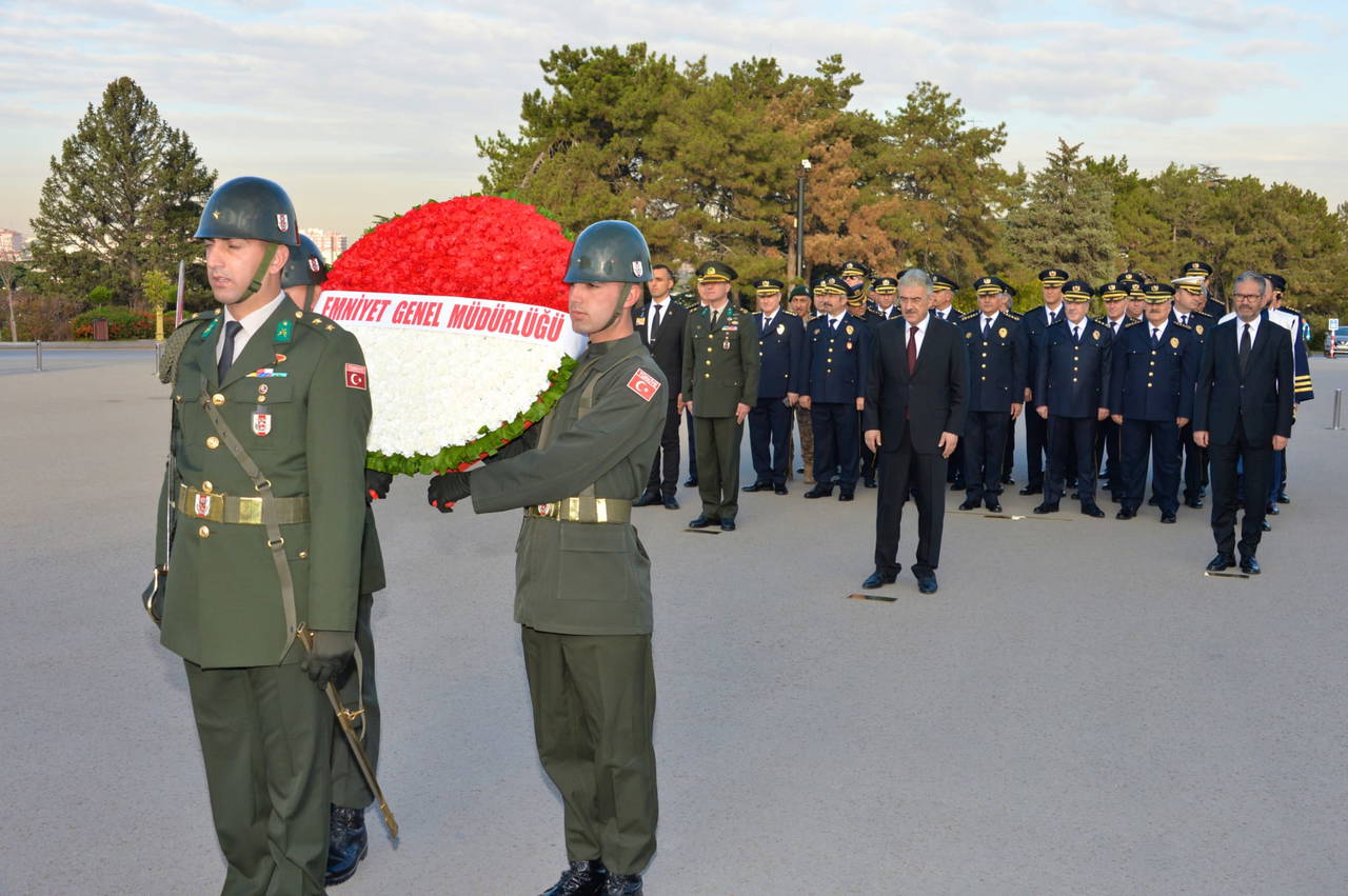 Emniyet Genel Müdürü Ayyıldız başkanlığındaki heyet, Aslanlı Yol'dan yürüyerek Gazi Mustafa Kemal Atatürk'ün mozolesine geldi.