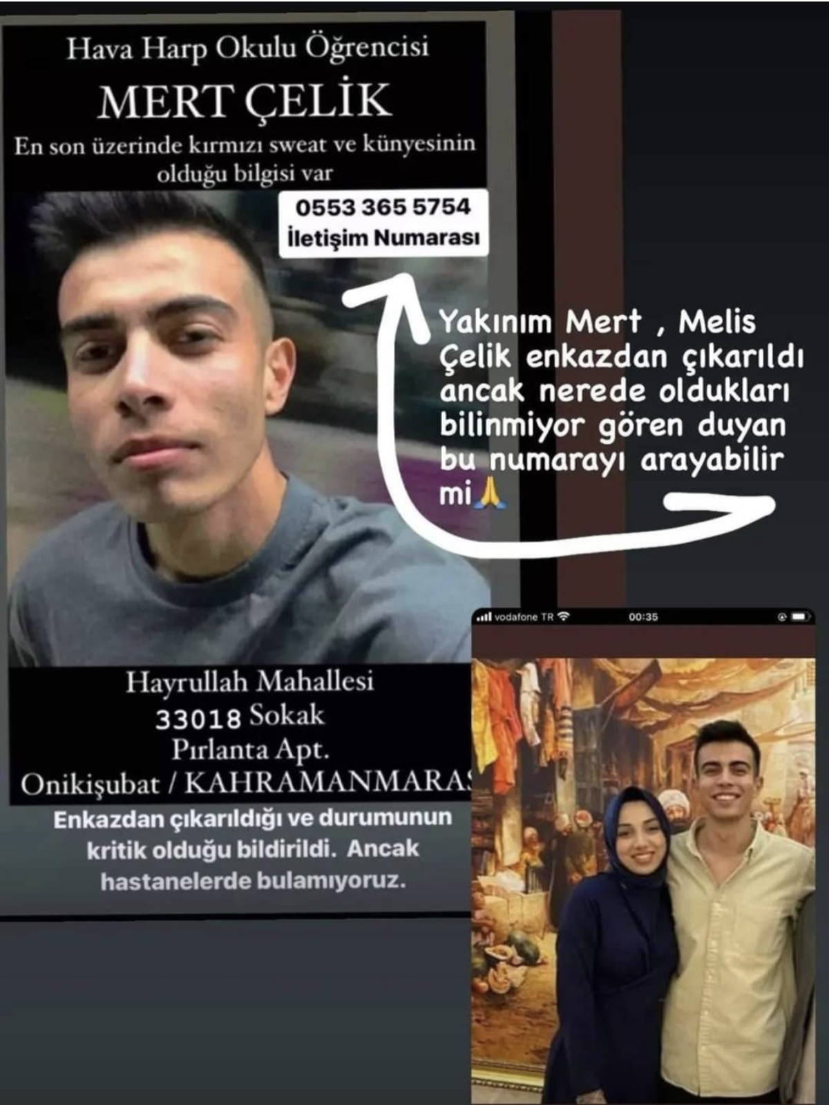 Mert Çelik'in kardeşi Melis Çelik, babası Erdoğan Çelik ve annesi Saadet Çelik'de hala Pırlanta Apartmanı enkazı altında kurtarılmayı bekliyor.