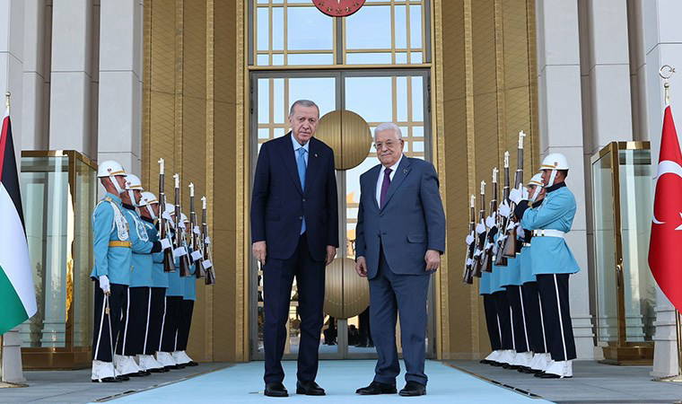 Cumhurbaşkanlığı'nın resmi sosyal medya hesabından yapılan paylaşımda, "Cumhurbaşkanımız Recep Tayyip Erdoğan, TBMM Genel Kurulu’na hitap etmek için Türkiye’ye gelen Filistin Devlet Başkanı Mahmud Abbas ile Cumhurbaşkanlığı Külliyesinde bir araya geldi" denildi.