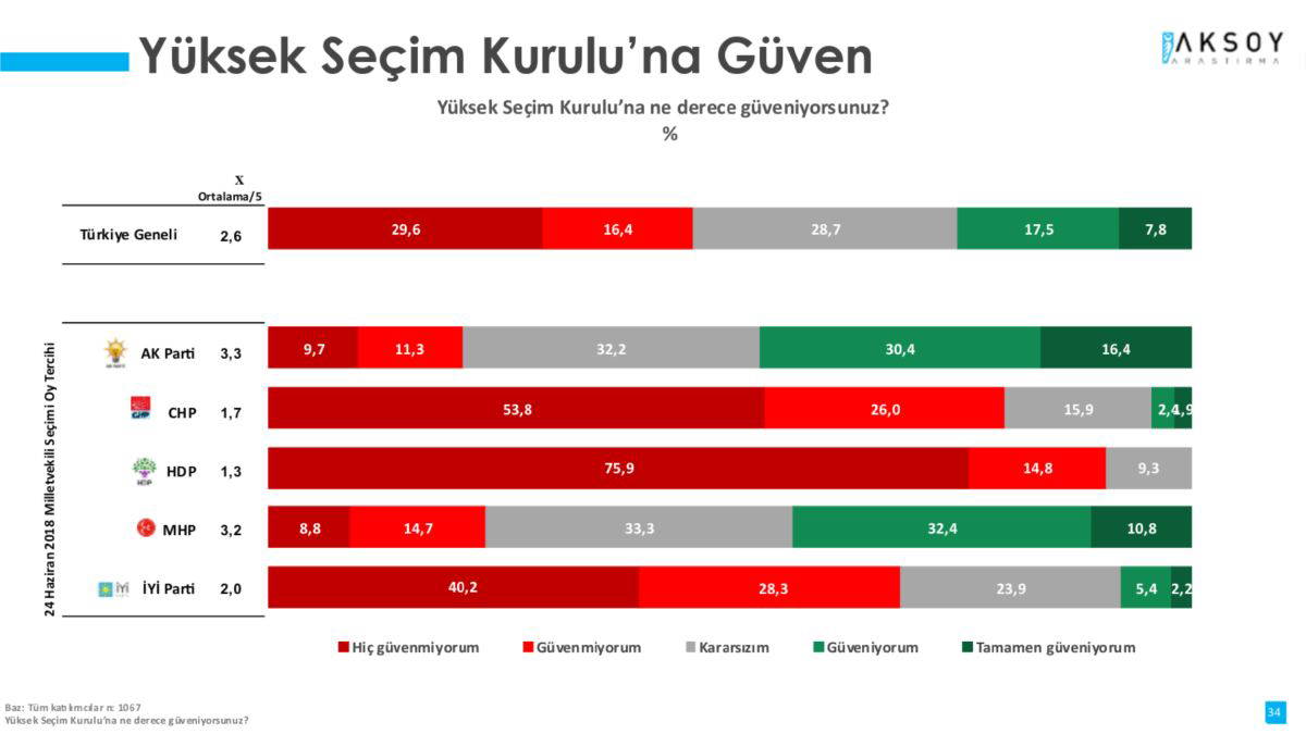 Şimdi birlikte bu kaygının boyutuna birlikte bakalım. İlk olarak seçim güvenliğinden asıl sorumlu olan YSK’ya duyulan güveni ele alalım.
