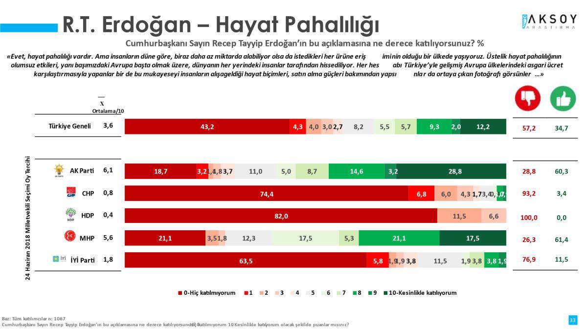 Gördüğünüz üzere toplumun genelinde Erdoğan’a katılanların oranı %34,7’de kalıyor. AKP ve MHP seçmenlerinin yaklaşık %40’ın da Erdoğan’ın söylemine doğrudan onay vermediğini dikkatinize sunmak isterim.