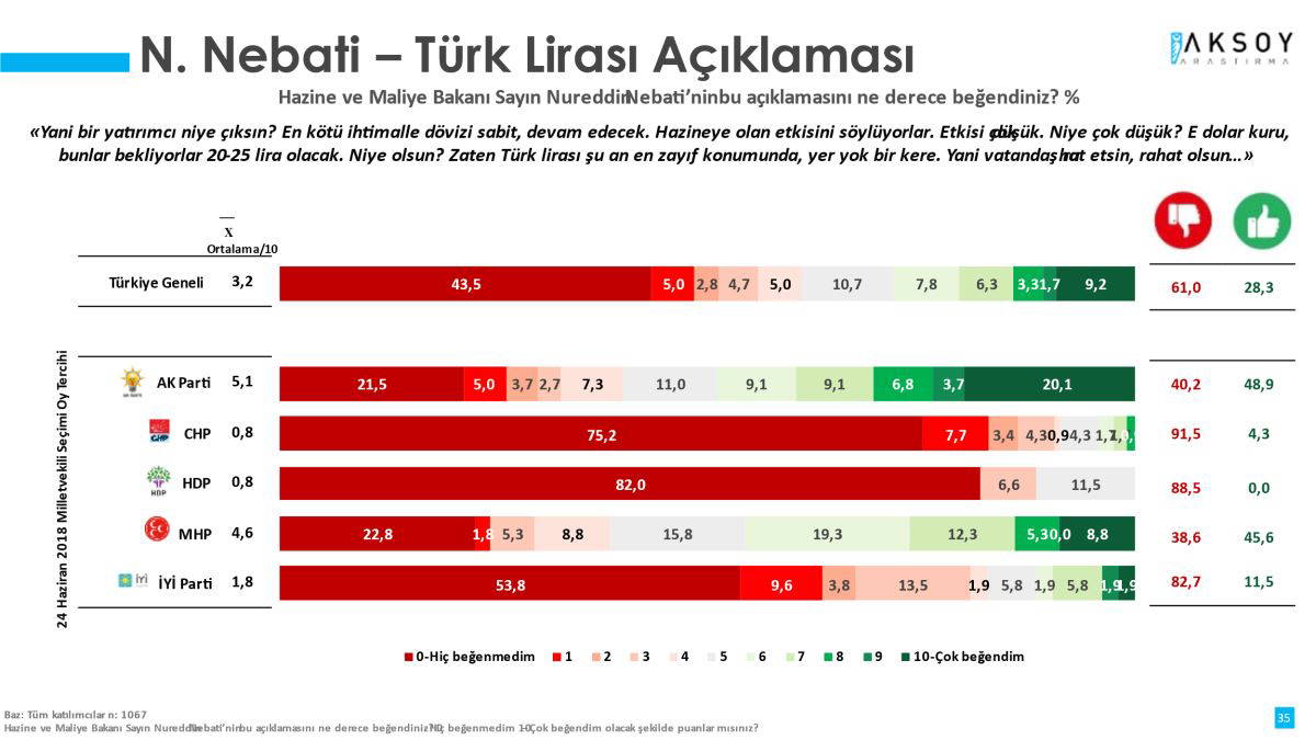 Gördüğünüz üzere toplumun sadece %28,3’ü Bakan’ın bu konuşmasını beğendiğini ifade ediyor. Çünkü ekonomik krizler toplumların ulusal onurunu zedeler. Bu tür açıklamalar da bu temel kuralın yarattığı gerçeklikten kopuk açıklamalardır. Özetle, iktidarın karar vericilerinin her geçen gün bunu nasıl söylerler dediğimiz açıklamalarının bizlere belki yarattığı bir psikolojik yük olduğunu kabul ediyorum. Fakat iktidar bloğuna yarattığı bir siyasal yük olduğunu da kamuoyunun bilgisine sunmayı görev olarak görüyorum. AKP’nin hem kendi hem ülke için yarattığı sorunlar artık onun iktidarıyla geri çevrilemez bir hale geldi. Burada bize düşen; bilimin politikleştirilmesi yoluyla toplumun somut sorunlarına bilimsel çözümler üreten bir sosyal demokrat iktidar için uğraş vermek, görev üstlenmektir.