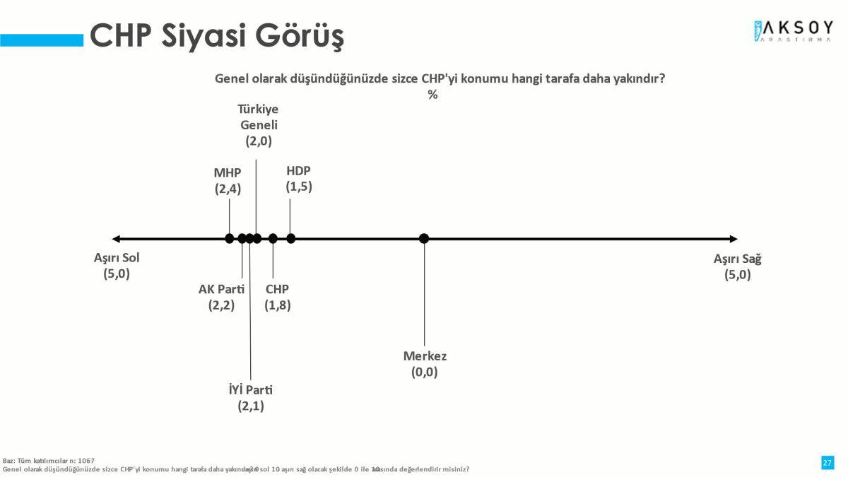 Sonuçlardan da anlaşıldığı üzere, tüm parti tabanlarında CHP’yi görece daha merkeze yakın görme eğilimi mevcut. Aynı analizi diğer partiler için de yaptık fakat yazının daha fazla uzamaması için paylaşamıyorum.