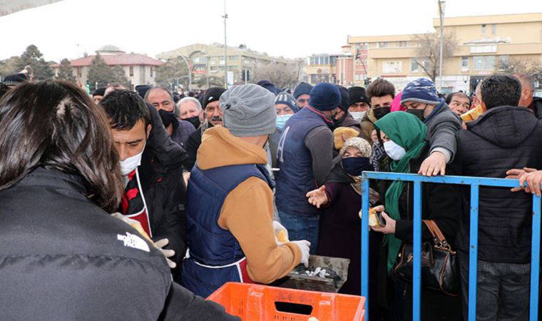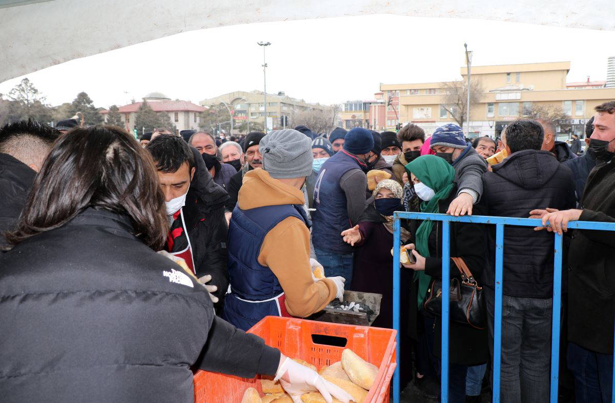 Erzincan Valisi Mehmet Makas ve diğer kent protokolünün alandan ayrılmalarının ardından sucuk ekmek dağıtımı izdihama neden oldu.