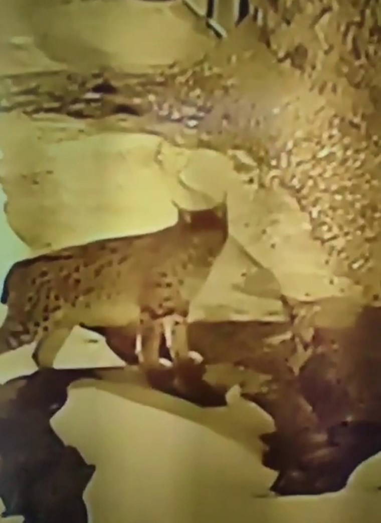 Erzincan'ın Kemaliye ilçesinde köye inip, yiyecek arayan vaşak, cep telefonu kamerasına yansıdı.