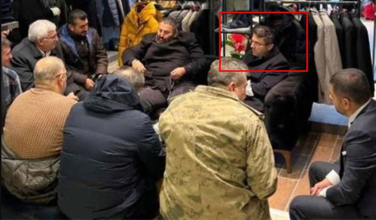 Fotoğrafta bir mağaza içinde elinde tespihiyle yayılarak sandalyede oturan Erkam Yıldırım’ın yanında Vali Oktay Memiş görünüyordu.