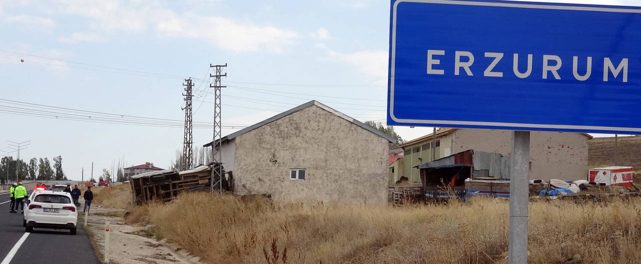 Kamyonet, Erzurum'a girişte sürücüsünün direksiyon hakimiyetini kaybetmesiyle takla atıp yol kenarındaki tek katlı binanın duvarına çarparak durdu. İhbar üzerine kaza yerine sağlık, polis, jandarma ve itfaiye ekipleri geldi.