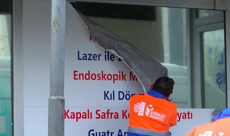 İddianamede adı geçen bir diğer hastane Esenler Güney Hastanesi'nde ise hasta kabul edilmiyor. Hizmet vermeyen hastanenin tabelaları görevliler tarafından tek tek kaldırıldı. Polis ekipleri hastane önüne şerit çekerek, yolu araç geçişine kapattı.