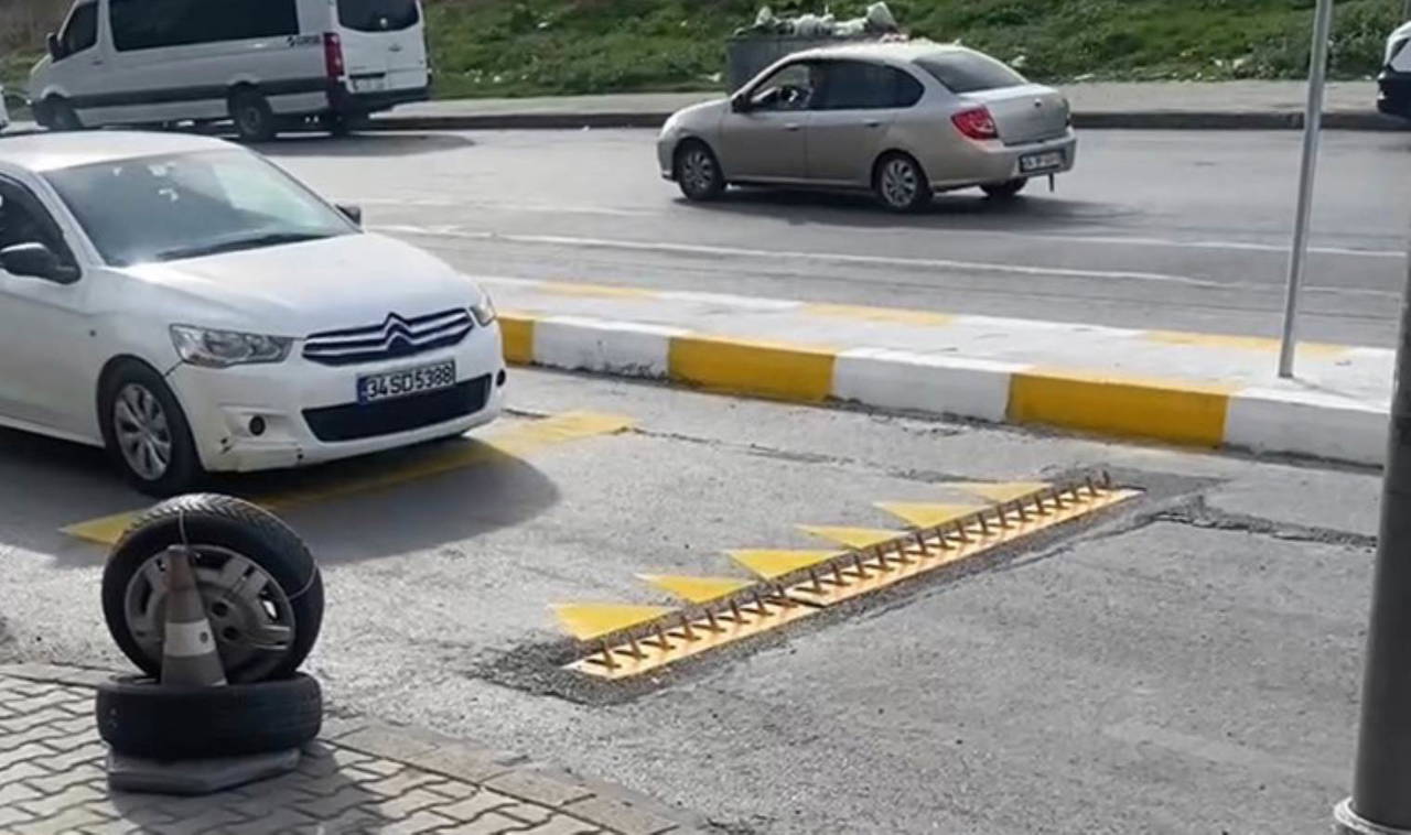 Esenyurt'ta tek yöne çevrilen yolda lastikçinin önüne kurulan kapanın çok sayıda aracın tekerinin patlamasına yol açması, sürücülerin tepkisine neden oldu.