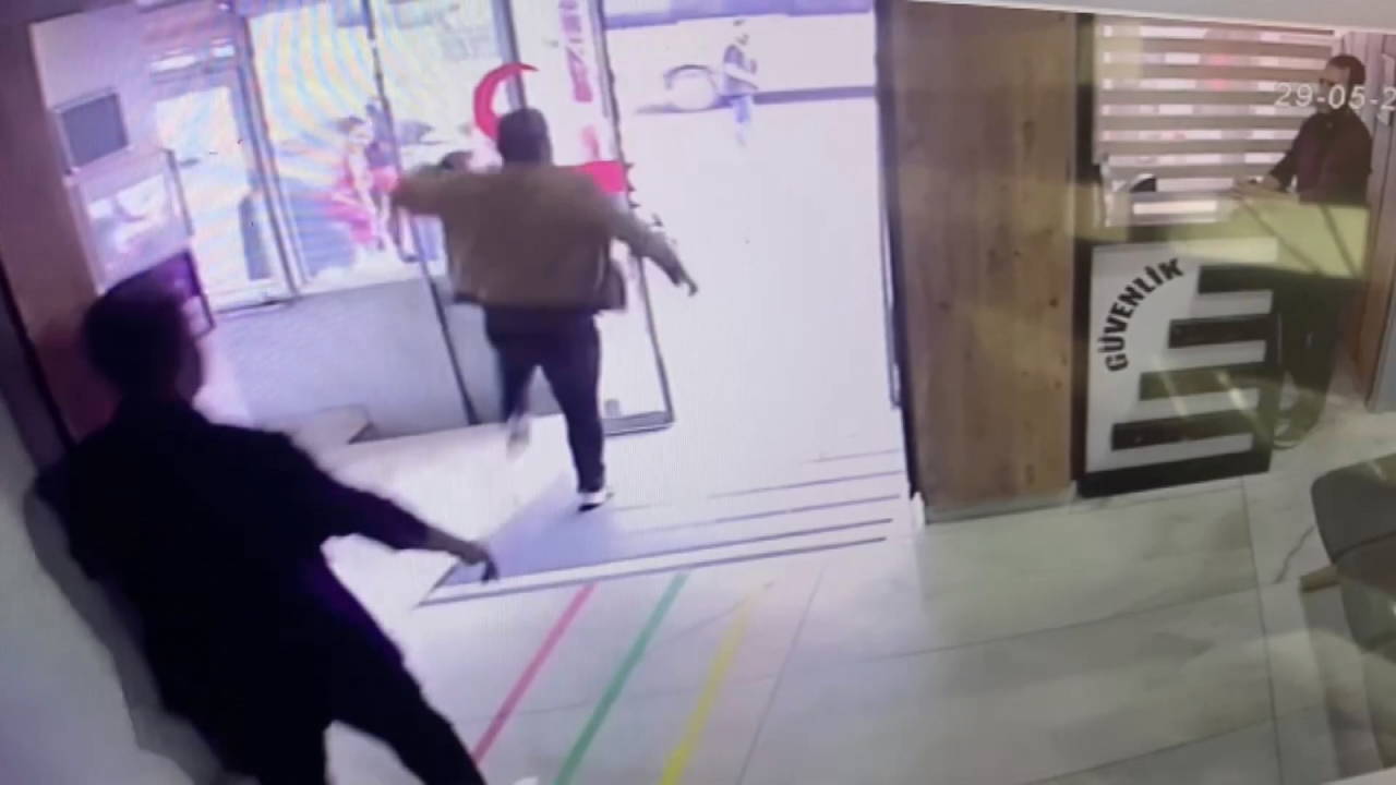 Kızlarının hayatını kaybettiğini öğrenen babası hastanenin giriş kapısının camını tekme atarak kırdı. O anlar güvenlik kameralarına yansıdı.