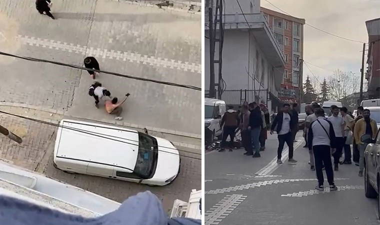 Görüntülerde, tekme ve yumrukların havada uçuştuğu ve bir şahsın motosikletiyle kavga edenlerin arasına daldığı anlar yer aldı.