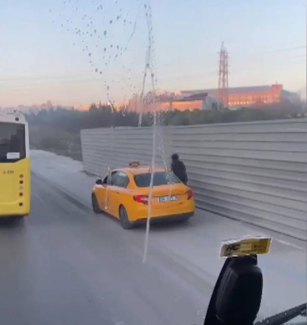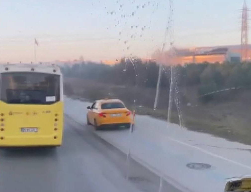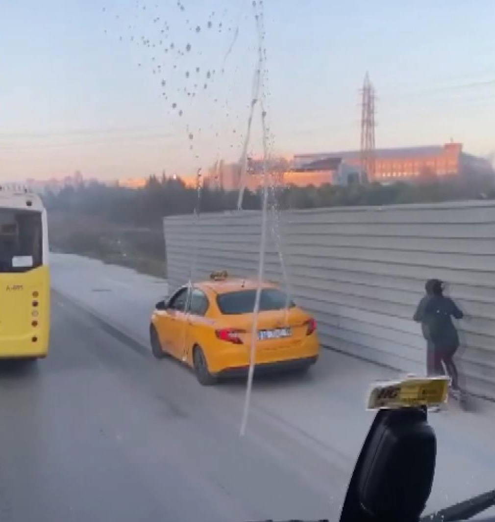 TEM Otoyolu Hadımköy bağlantısı Esenyurt mevkisinde, önceki gün öğle saatlerinde taksi şoförü, yoğun trafikten kaçmak için kaldırıma çıkarak ilerledi.