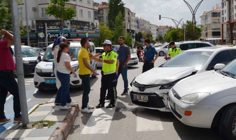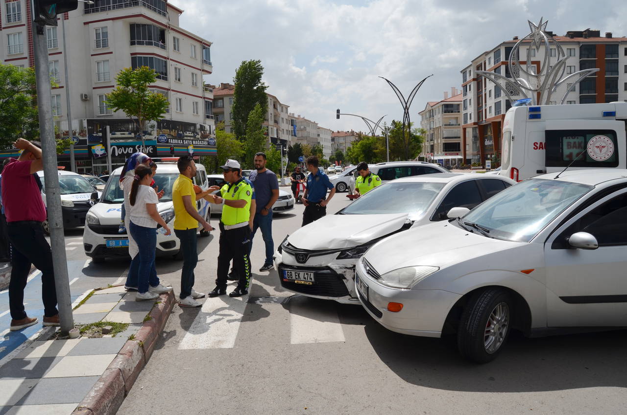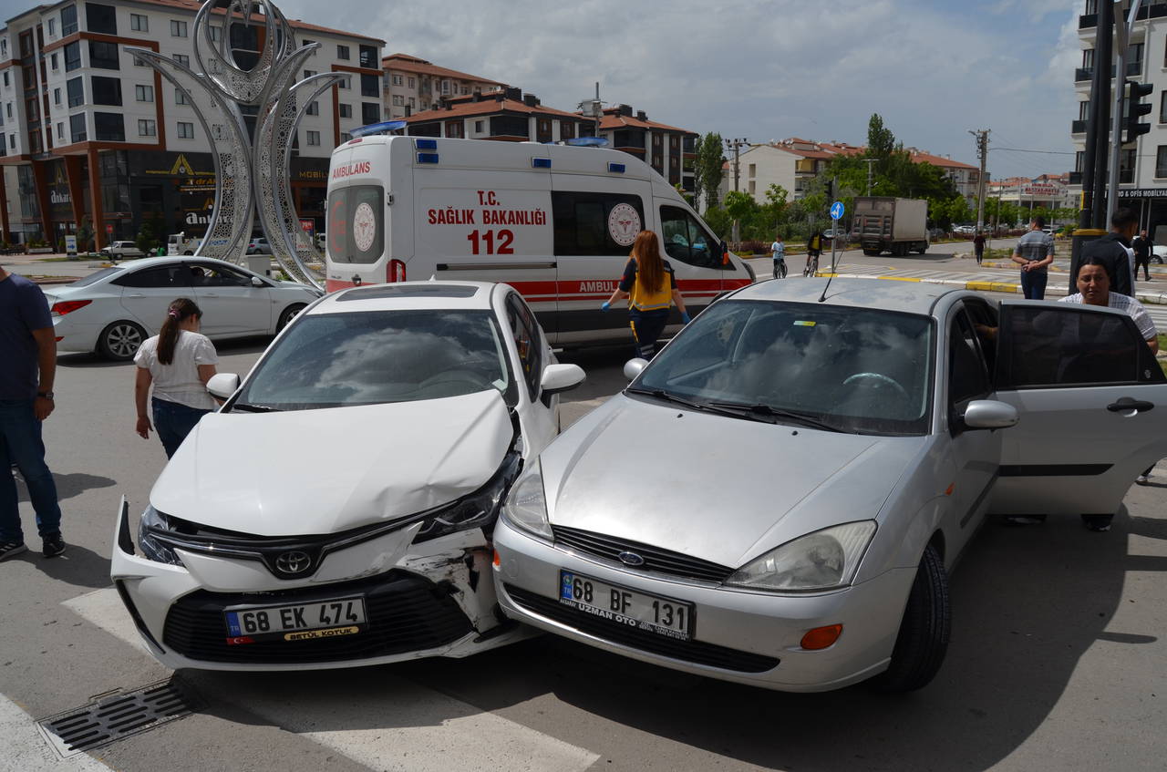 Küçük Bölcek Mahallesi Cumhuriyet Bulvarı'nda kavşakta saat 15.00 sıralarında; Şenay K. (30) yönetimindeki 68 EK 474 plakalı otomobil Hasan Hüseyin D.'nin (30) kullandığı 68 BF 131 plakalı otomobille çarpıştı.