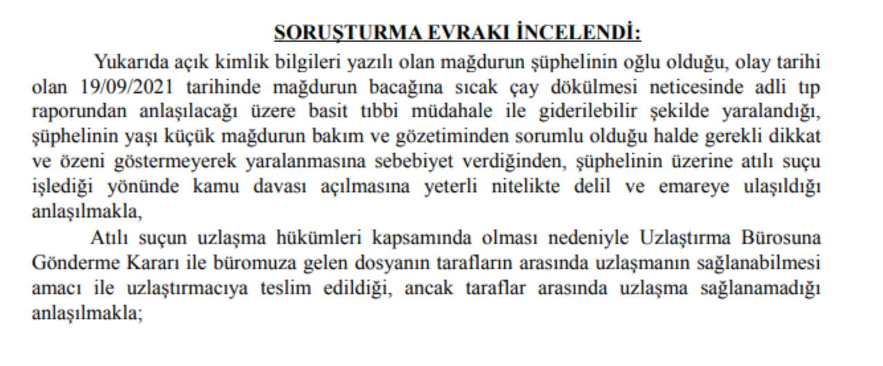 Hastanede darp raporu çıkarıldığını ancak fiziksel şiddete dair açılan davada annenin beraat ettiğini anlatan F.O., çocuğun bacak arasında ve kol içlerinde de ısırığa benzer izler gördüğünü söyledi. Bu süreçte ALO 184'ü arayarak yardım talebinde bulunduğunu belirten baba,
