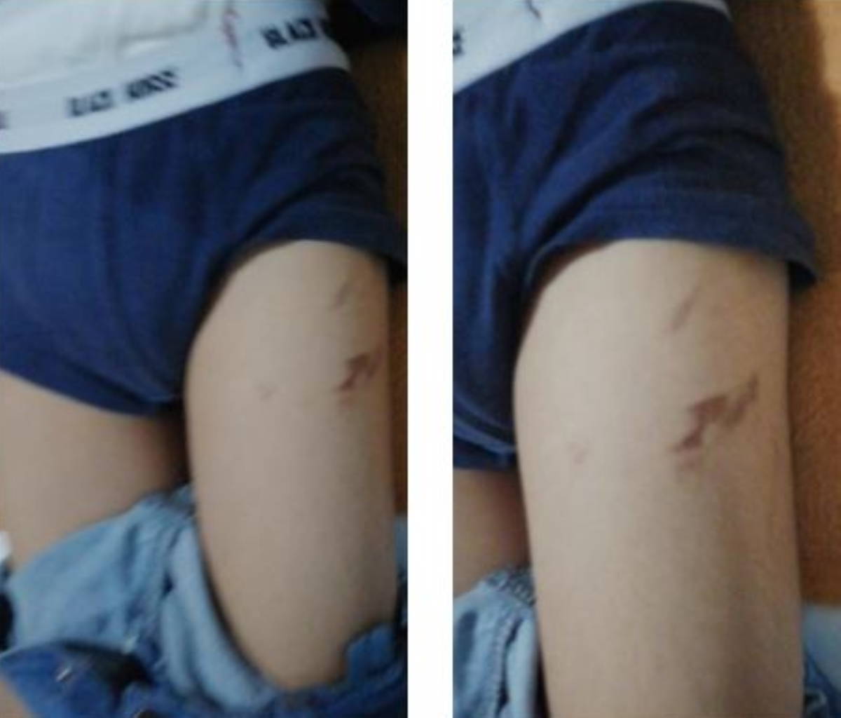 Baba F.O., kız çocuğunun ise dirseklerinde, bacaklarında ve vücudunun çeşitli yerlerinde morluklar gördüğünü, annenin ise çocuğun düştüğünü söylediğini belirtti. Bir süre sonra kız çocuğunun yüzünü temizlerken, gözünde makyaj ile kapatılmaya çalışılan bir morluk olduğunu gören F.O., çocuğu hastaneye götürdüklerini söyledi.