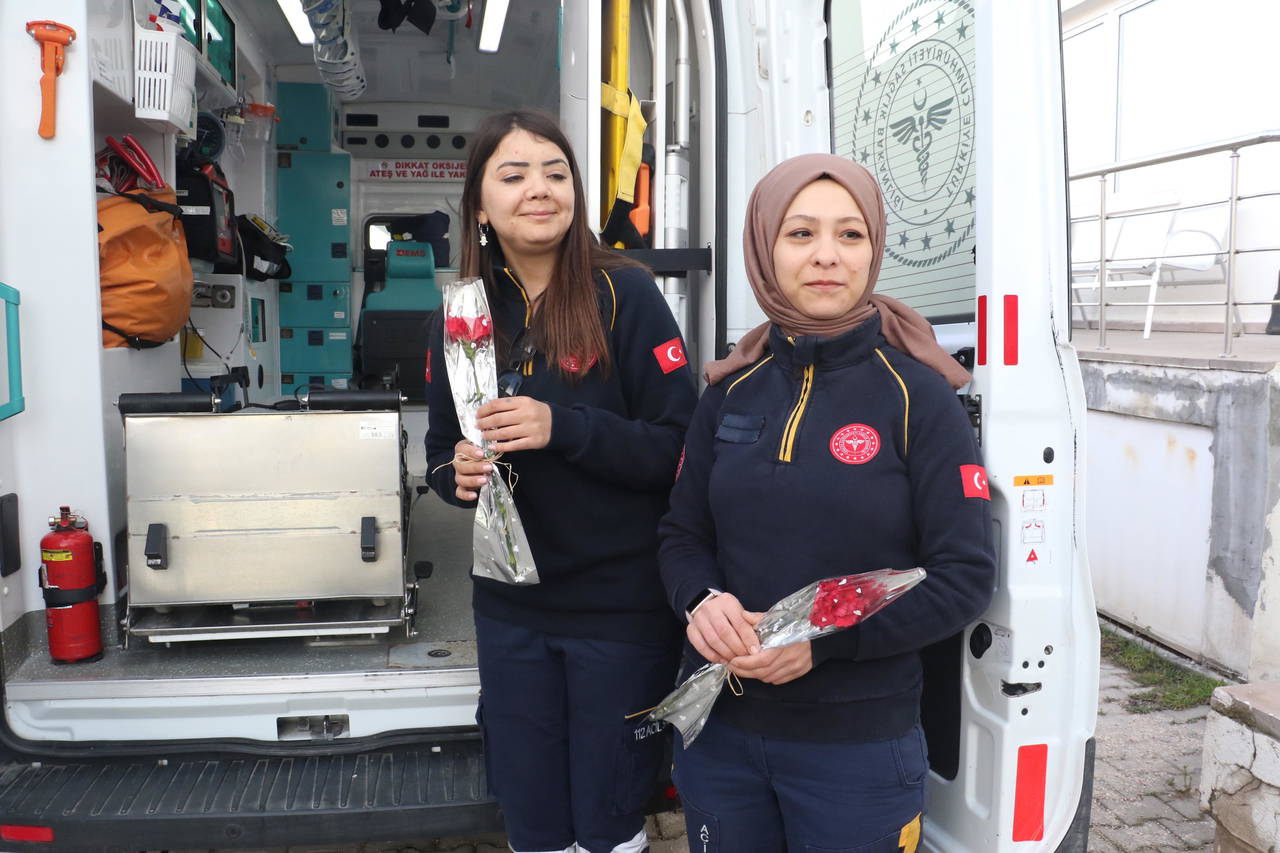 Paramedik Gülşah Kaya da kadınlar gününde izin yaptıklarını anlatarak, “8 Mart'ta kadınlar olarak çalışmıyoruz. Erkek personellerimiz bizden nöbeti devralıyorlar. Biz de ailemizle, sevdiklerimizle birlikte 8 Mart'ı evimizde geçiriyoruz. Bunun için erkek personellerimize ve başhekimimize teşekkür ediyoruz” dedi.