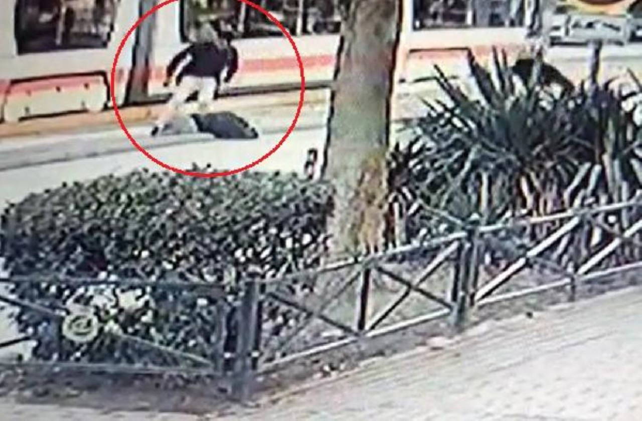 Görüntülerde tramvayın Gür'e çarptığı ve çevredekilerin kaza yerine koştuğu görüldü.